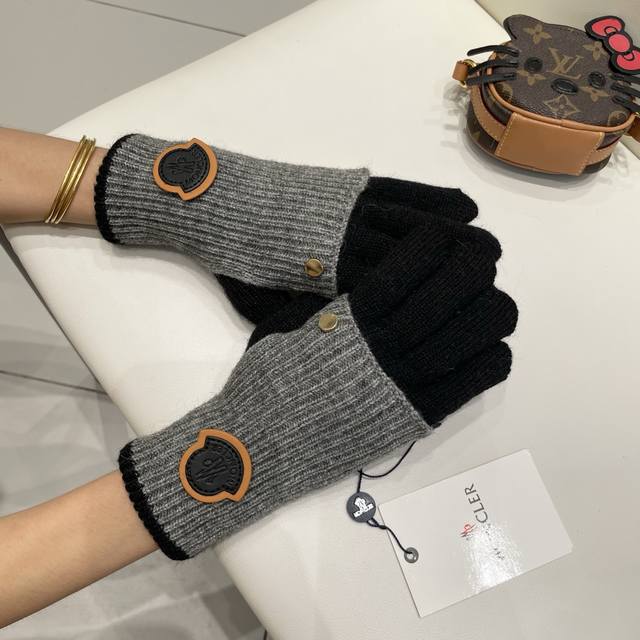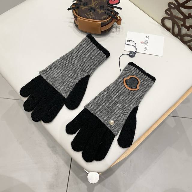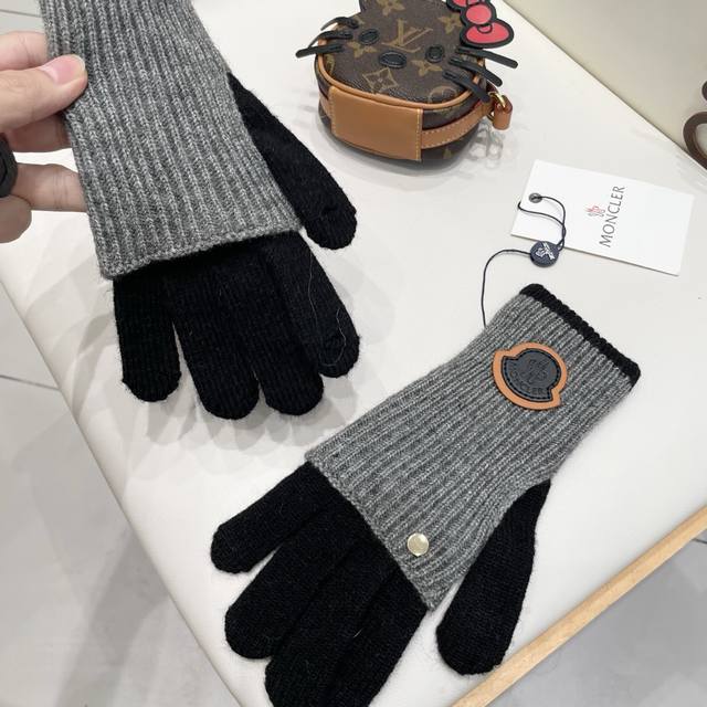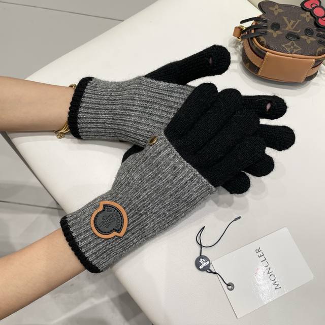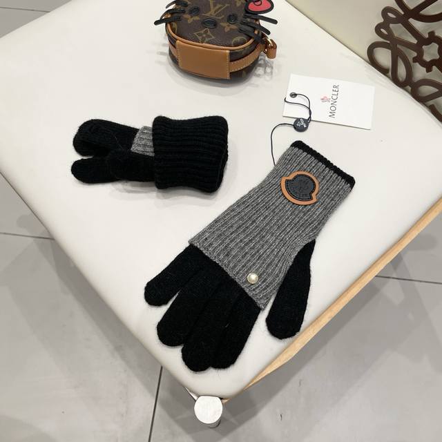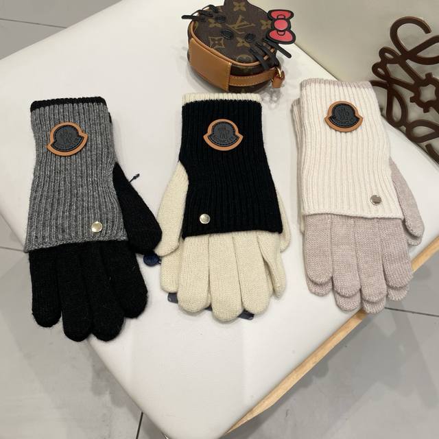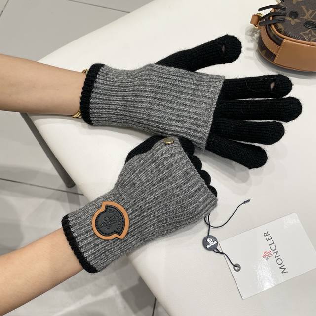 / Moncler knitted wool warm wool gloves for women autumn and winter dual-use doubl