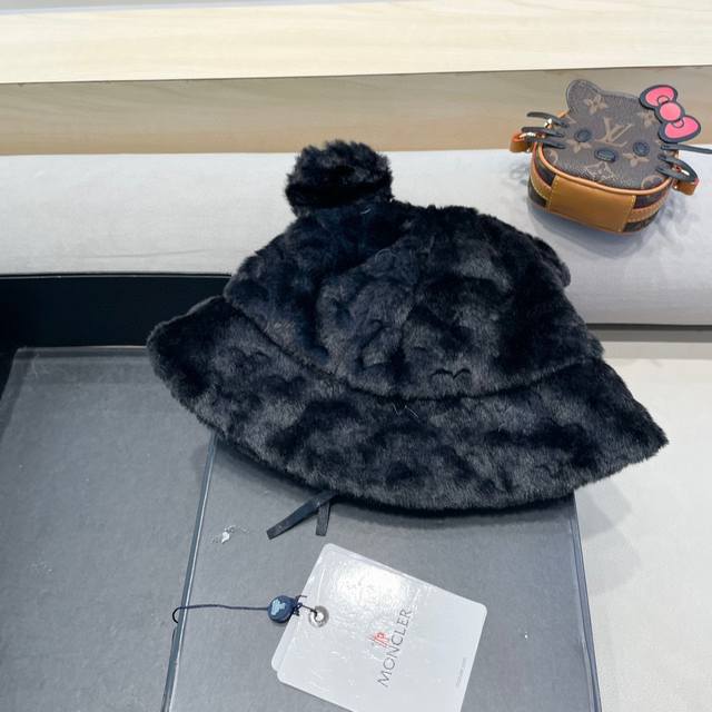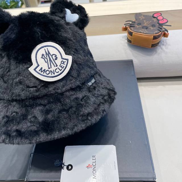 Moncler love plush fisherman hat women's autumn and winter warm all-match ear basin hat plus velvet thickened all-match imitation rabbit fur Korean version