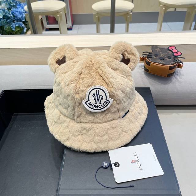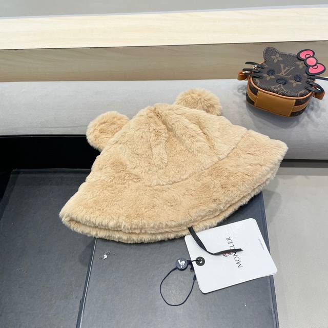 Moncler love plush fisherman hat women's autumn and winter warm all-match ear basin hat plus velvet thickened all-match imitation rabbit fur Korean version