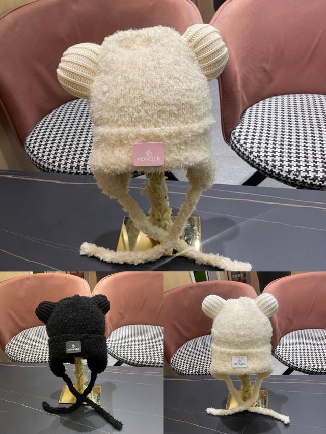 Moncler Autumn/Winter Cute Furry Hat with Ear Covers, Outdoor Warm Ear Cover, He