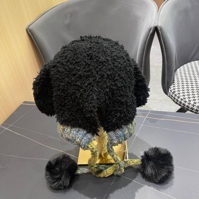 Moncler autumn and winter new hat women's color matching long rope plush hat wom