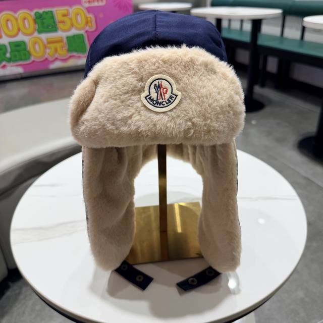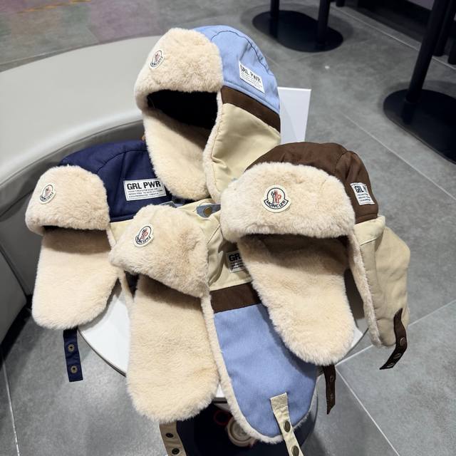 Moncler Plush Lei Feng Hat for Women, Cycling, Cold-Proof, Warm, Ear-Protecting Hat, 2025 New Winter Style, Fleece-Lined, Thickened Hat DDD