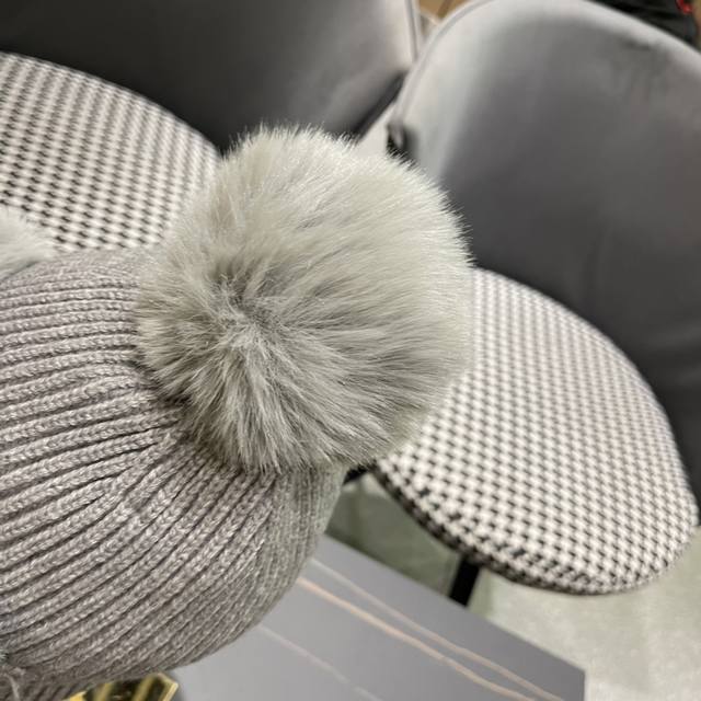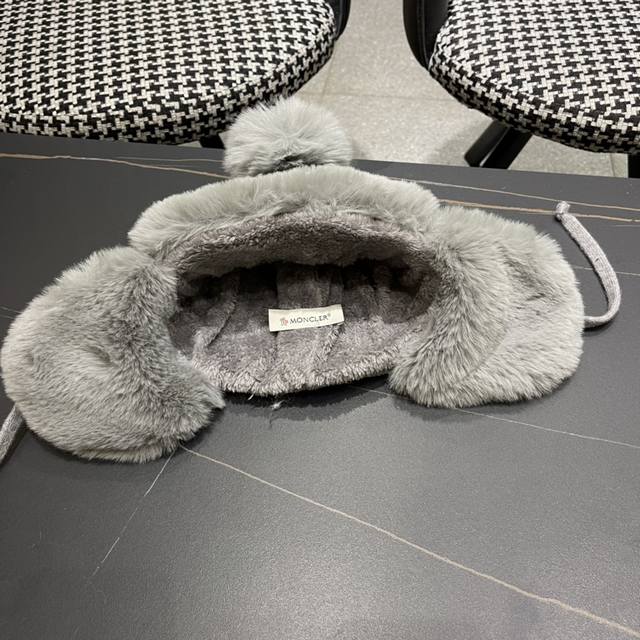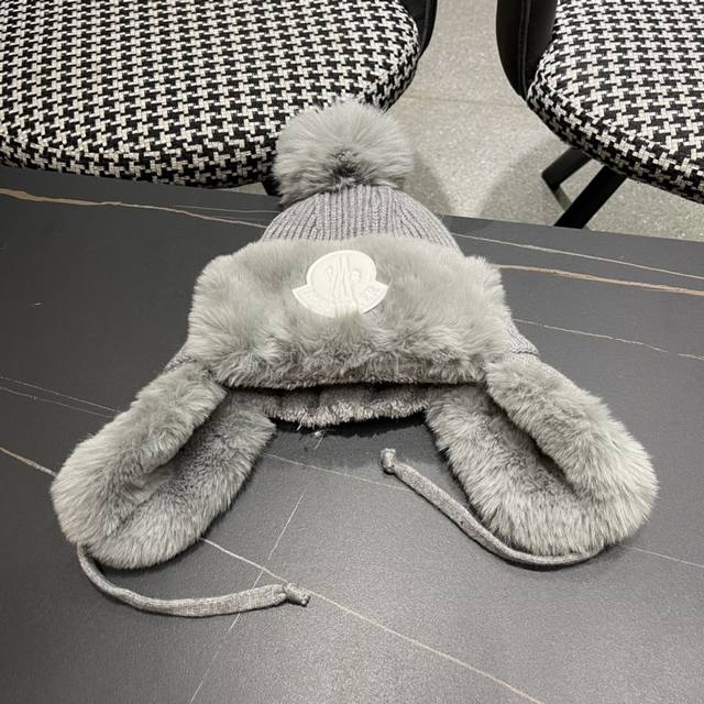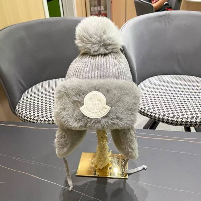 / Moncler rabbit fur blended plus velvet knitted earmuffs hat for women in winter