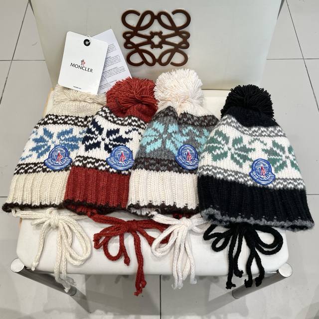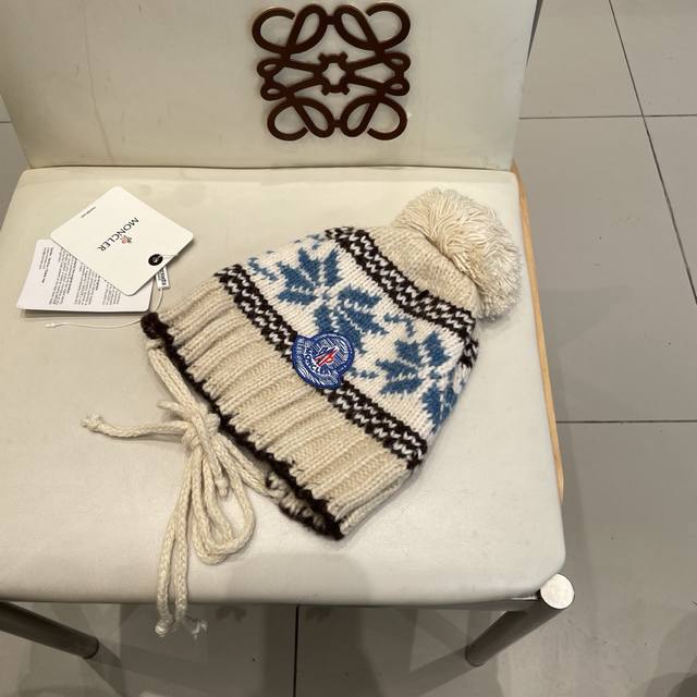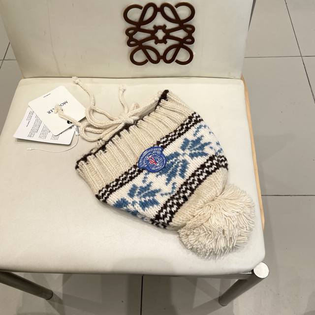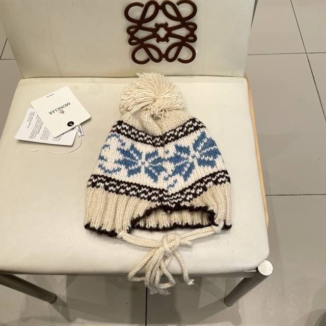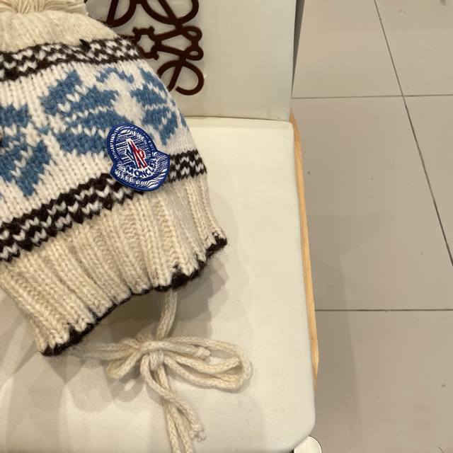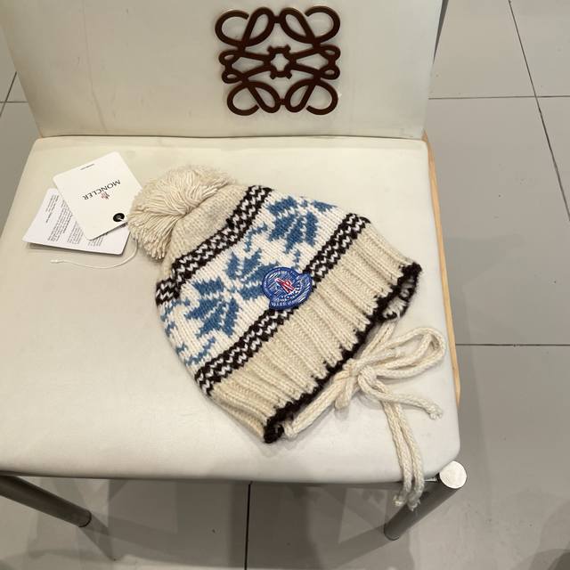 / Moncler retro jacquard warm knitted hat for women 2025 autumn and winter casual