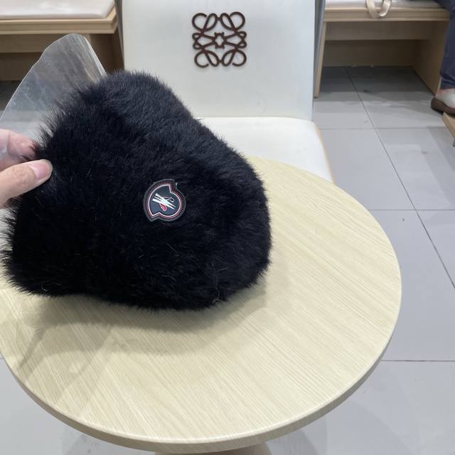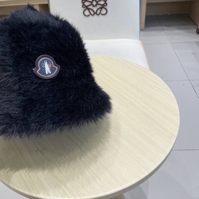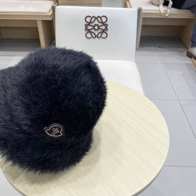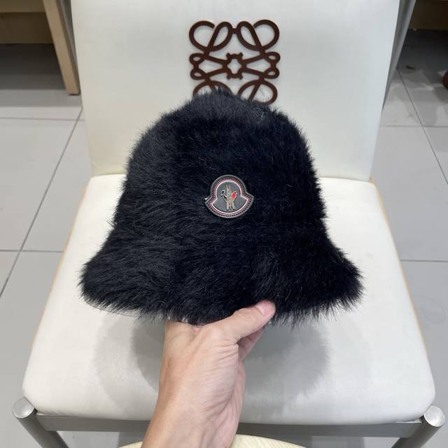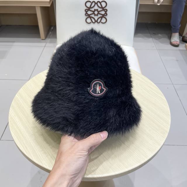 Moncler Soft and Dense Long Hair Fisherman's Hat for Women, Warm Solid Color Bucket Hat, Everyday Wear, Makes Face Look Smaller, Autumn and Winter (