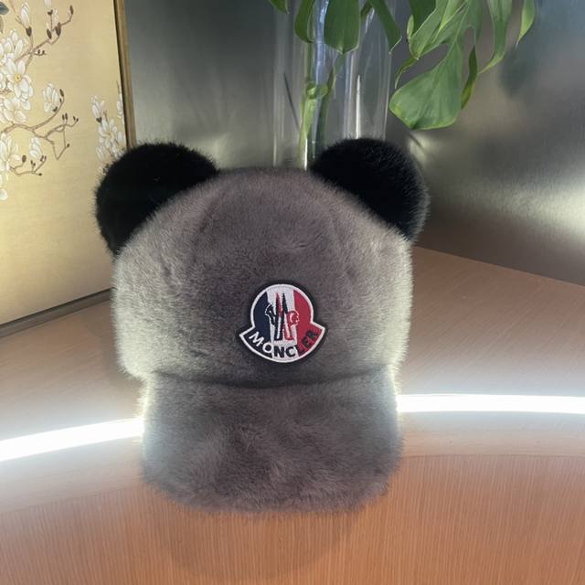Moncler trendy brand Moncler imitation mink plush cap for women autumn and winter warm cute Mickey hat with bear ears