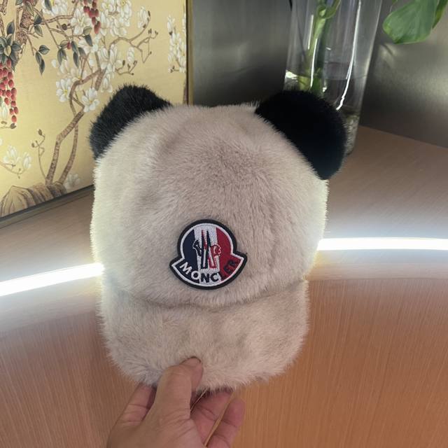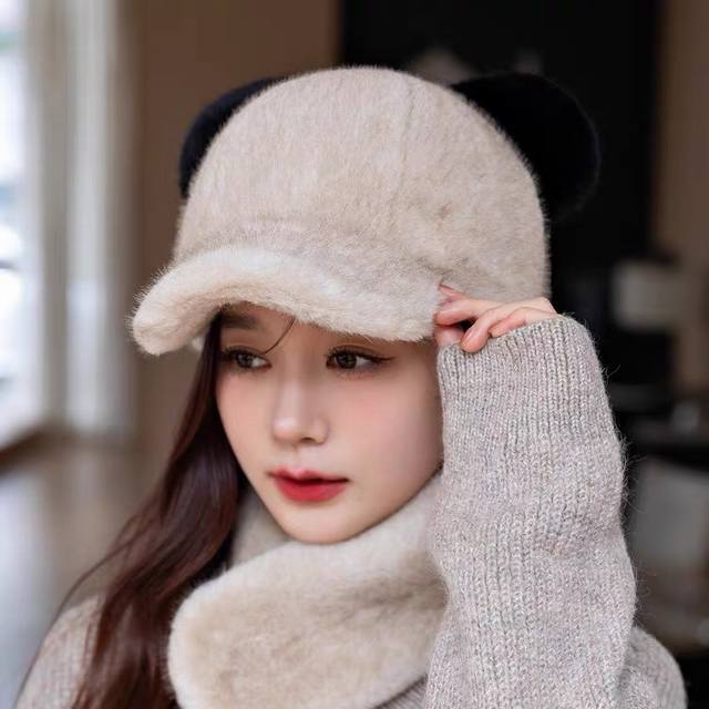 Moncler trendy brand Moncler imitation mink plush cap for women autumn and winter warm cute Mickey hat with bear ears