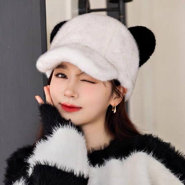 Moncler trendy brand Moncler imitation mink plush cap for women autumn and winter warm cute Mickey hat with bear ears