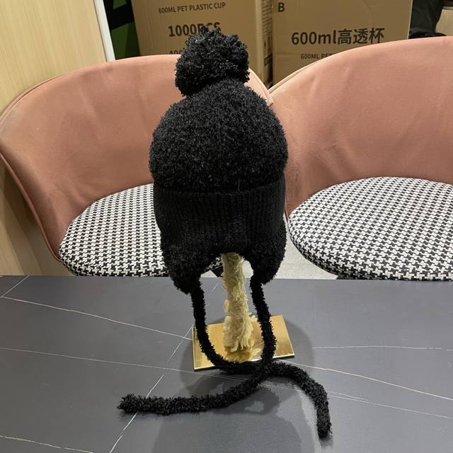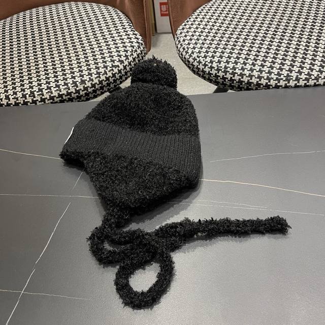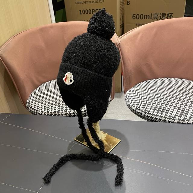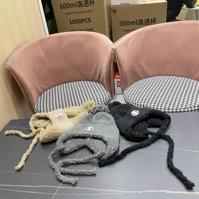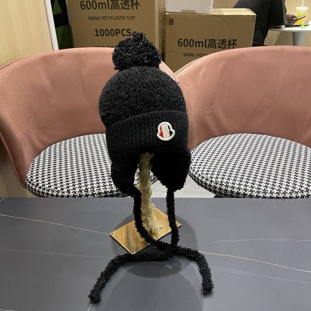 Moncler Winter Fleece-Lined Earflap Hat for Women, Autumn/Winter Tie-Wrap Knitted Cute Face-Slimming Lei Feng Hat, Warm and Cozy DDD