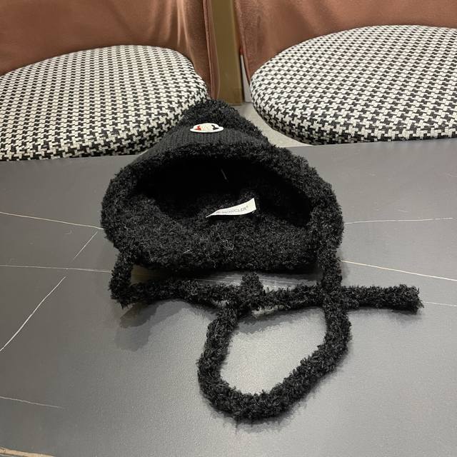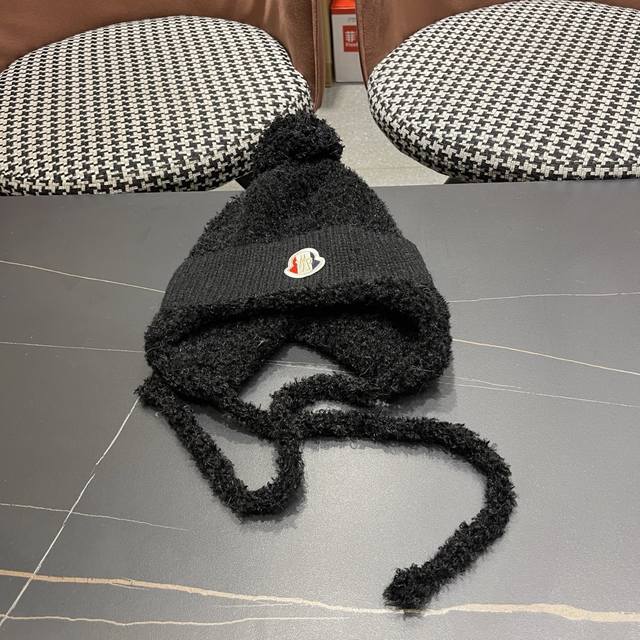 / Moncler Winter Fleece-Lined Earflap Hat for Women, Autumn/Winter Tie-Wrap Knitt