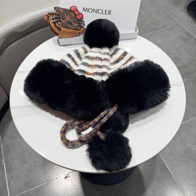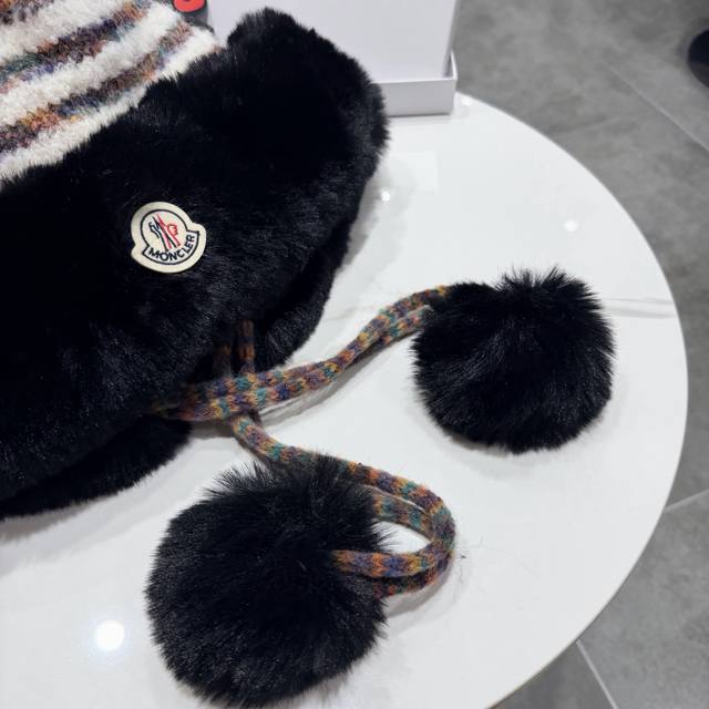 / Moncler Women's Autumn and Winter Cute Pom-Pom Earflap New Plush Warm Lei Feng