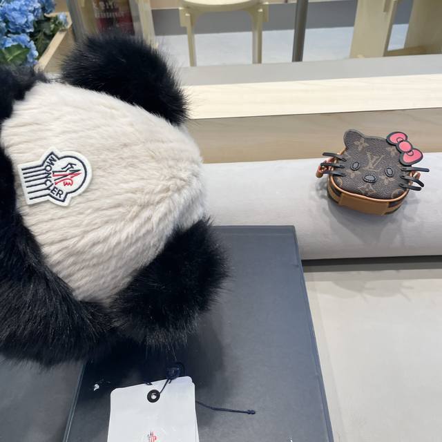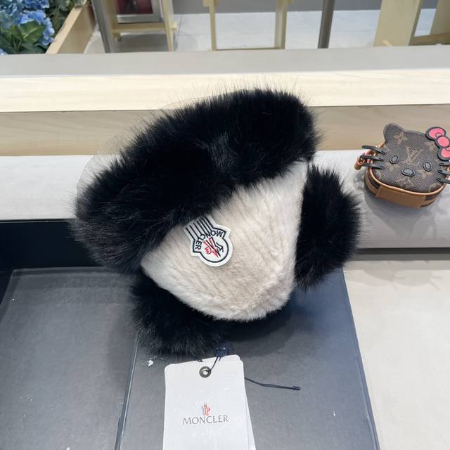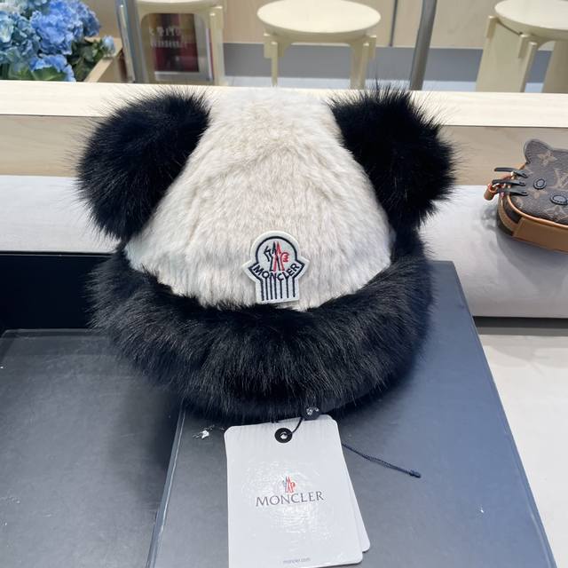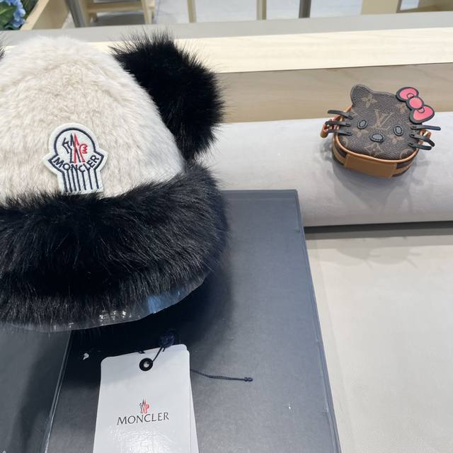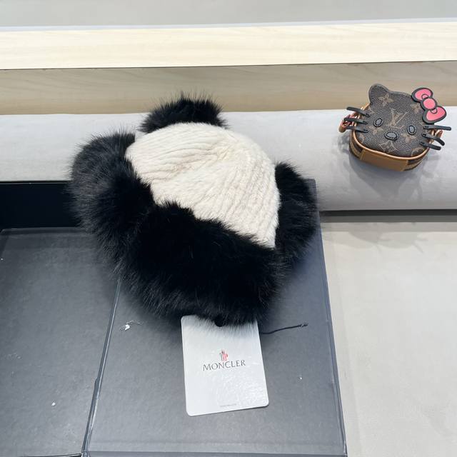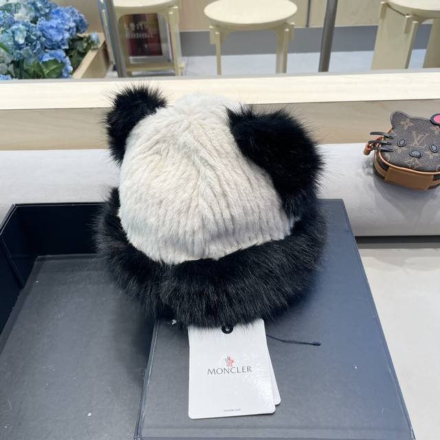 Moncler Women's Fleece Hat, Autumn/Winter, Thickened Fleece-Lined Pullover Hat, Cute Bear Earm Protector, Warm and Cold-Proof Pullover Hat