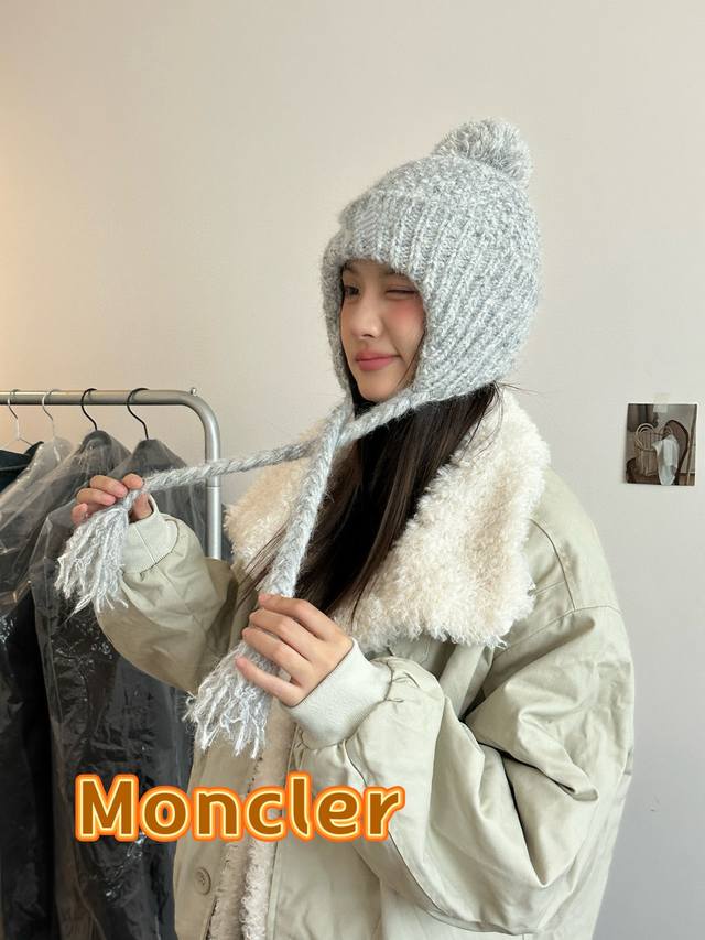 / Moncler Women's Lace-up Knitted Hat, 2025 New Fashionable Versatile Windproof Co