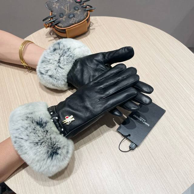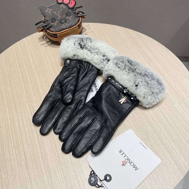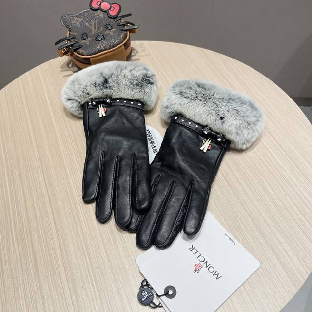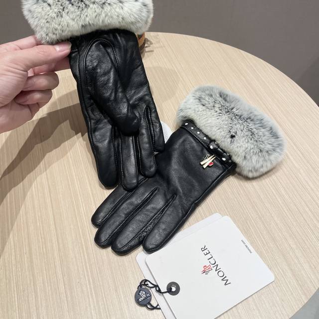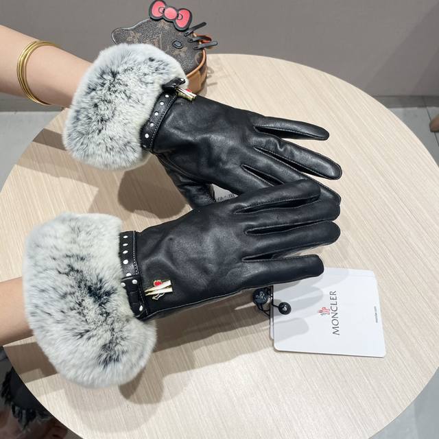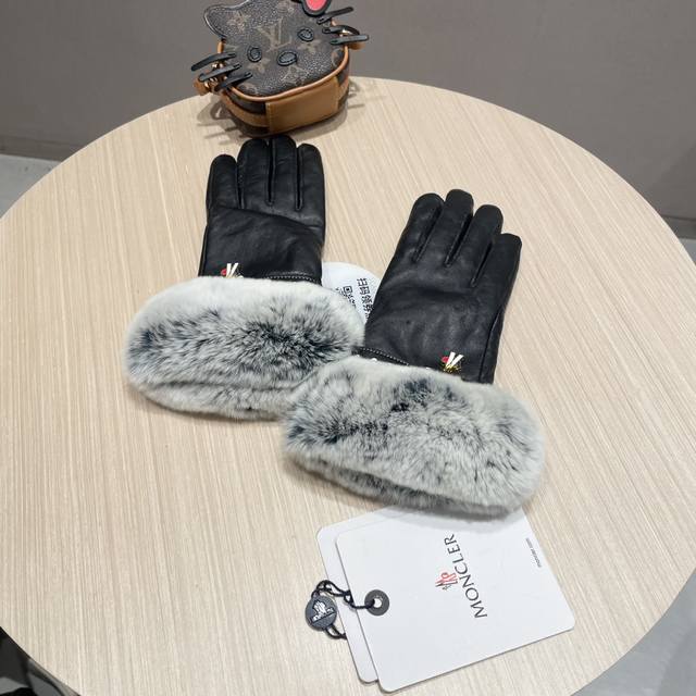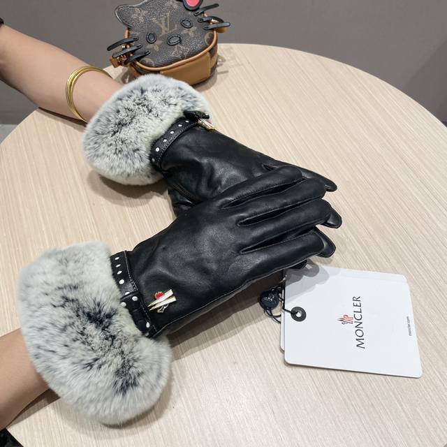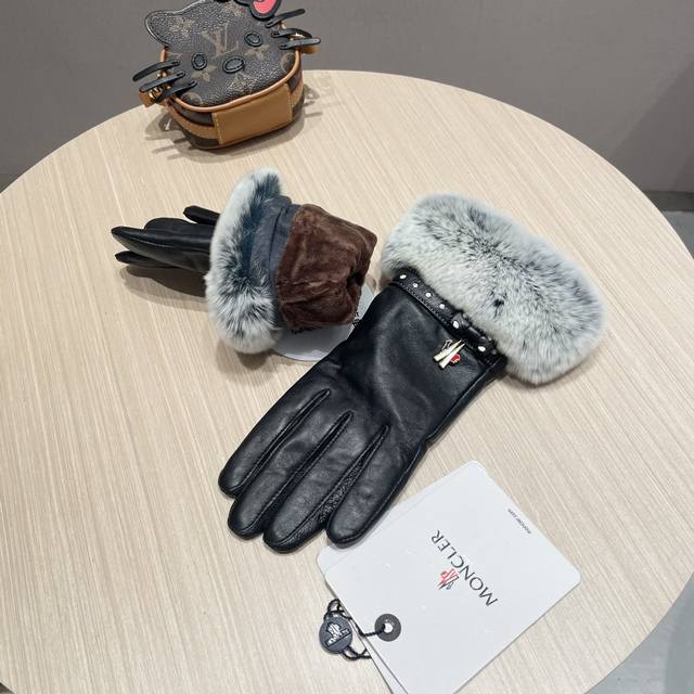 Moncler Women's New Arrival Sheepskin Rabbit Fur Gloves, fashionable gloves, warm for autumn and winter with fleece lining, classic and simple design, super comfortable and soft to wear, versatile! Sizes: L, XL,