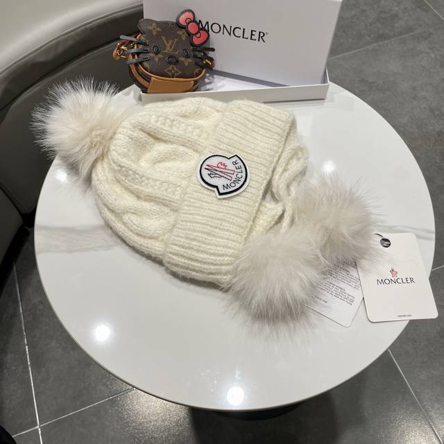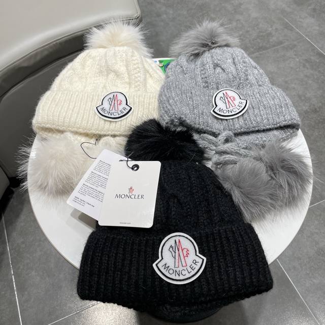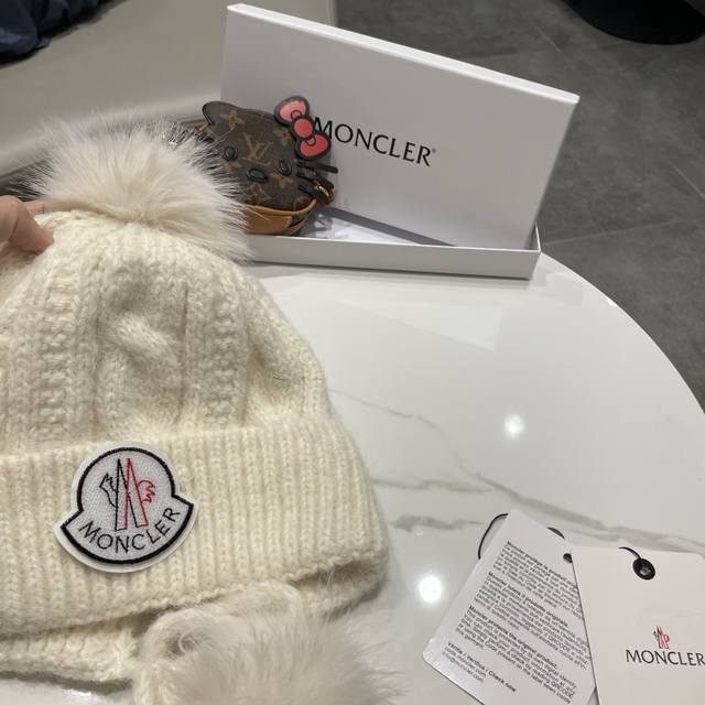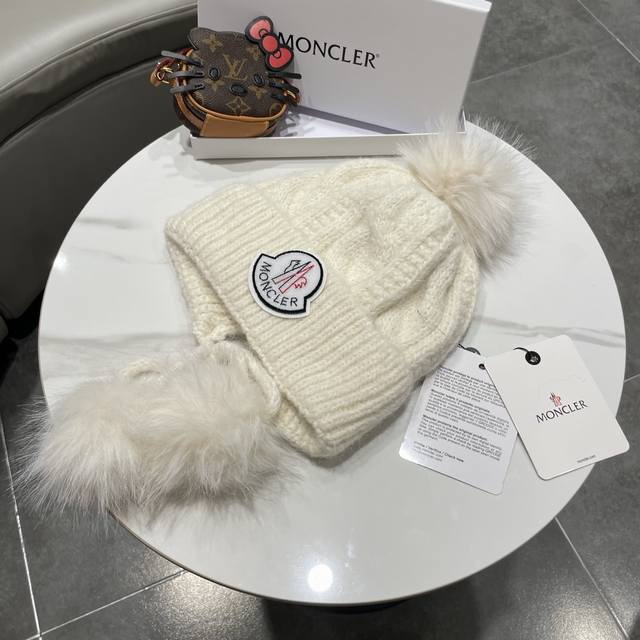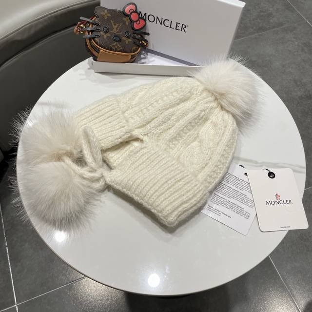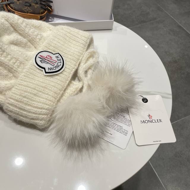 A classic Moncler wool hat set! Comes with a 20cm camel fur ball hat and scarf!