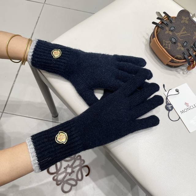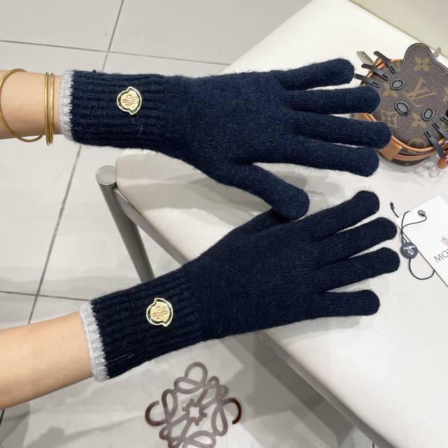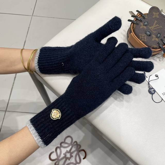 / Moncler wool knit gloves for women, autumn and winter, windproof, warm, fingerle