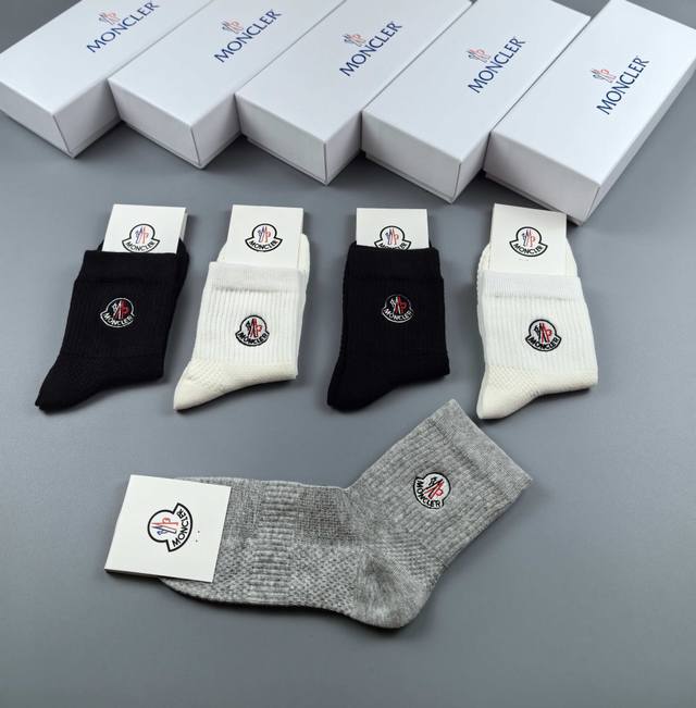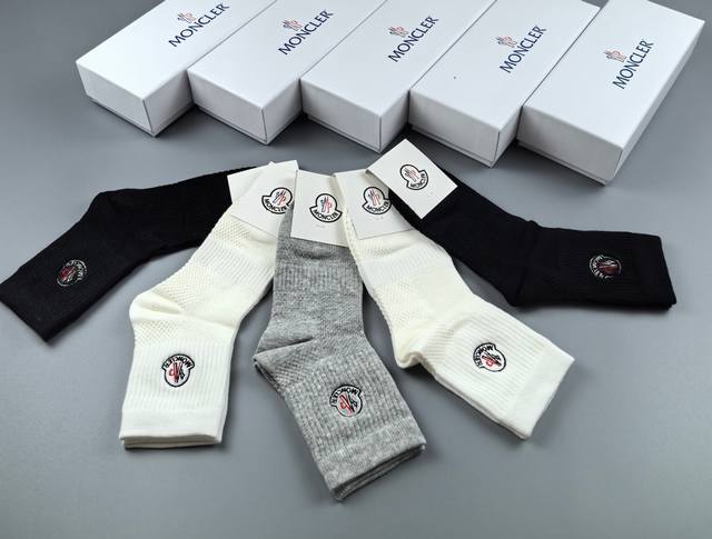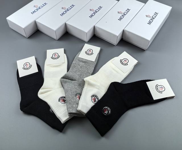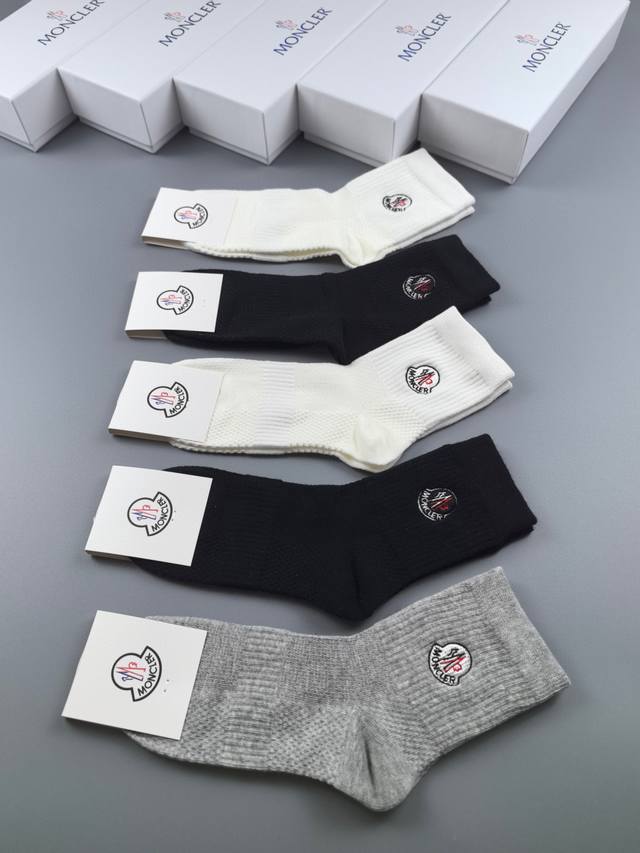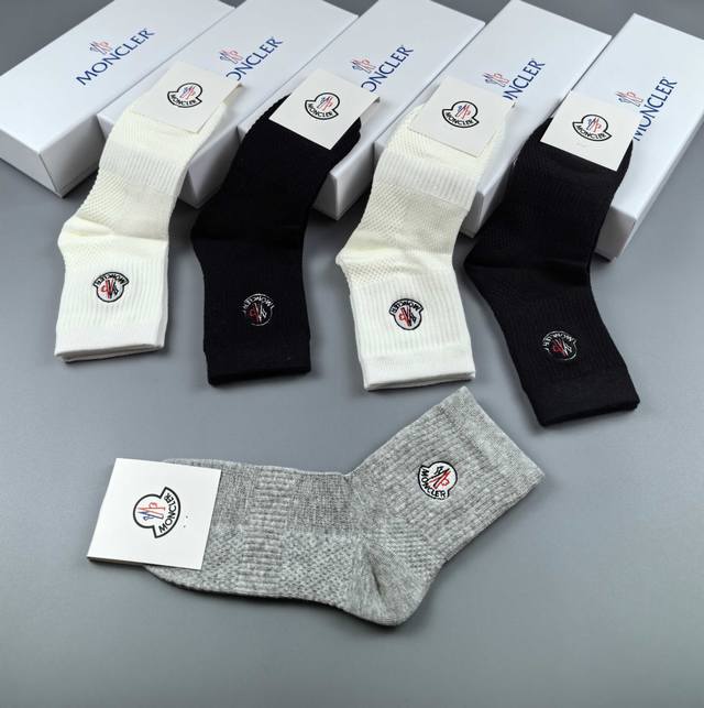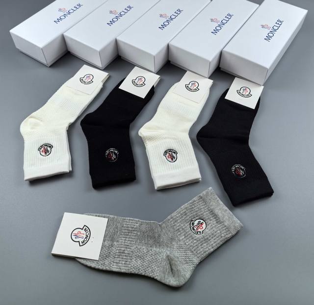 Special packaging from official stores! Moncler's latest mid-calf embroidered slouch socks! Five pairs per box, same style as official stores, a must-have for trendsetters, super easy to match!