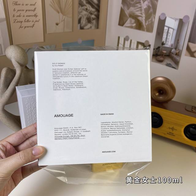 High-end quality DDD Amouage Gold Woman 100ml DDD Amouage Gold Woman, 1983 DDD Brand: Amouage DDD Perfumer: Guy Robert DDD Gender: Women's Fragrance DDD Fragrance Family: Aldehyde Floral DDD Top Notes: Lily of the Valley, Rose, Incense DDD Middle Notes: Incense, Jasmine, Myrrh, Orris Root, Labdanum DDD Base Notes: Ambergris, Civet, Musk, Cedar, Sandalwood DDD