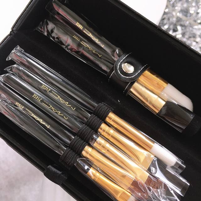High-end quality DDD Mac leather case and makeup brush nine-piece set, Mac's consistent style, simple black, a substantial piece! DDD