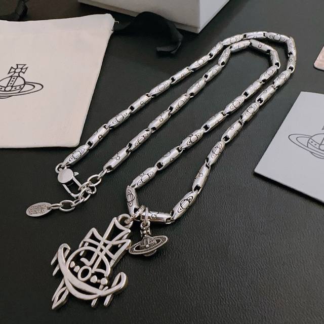 High-quality classic Saturn necklace, unisex, 60cm. Vivienne Westwood Saturn necklace! British fashion designer, the mother of punk fashion! Trendy style, high quality, and a stunning design! Simple yet elegant, with a delicate embroidered logo. This piece is sure to look good, thanks to its classic elements and chic new design! A perfect gift choice, fully showcasing your personality. The quality is exceptional; this jewelry exudes a high-end aura while being exquisitely crafted, elevating your overall look significantly. Definitely worth buying!