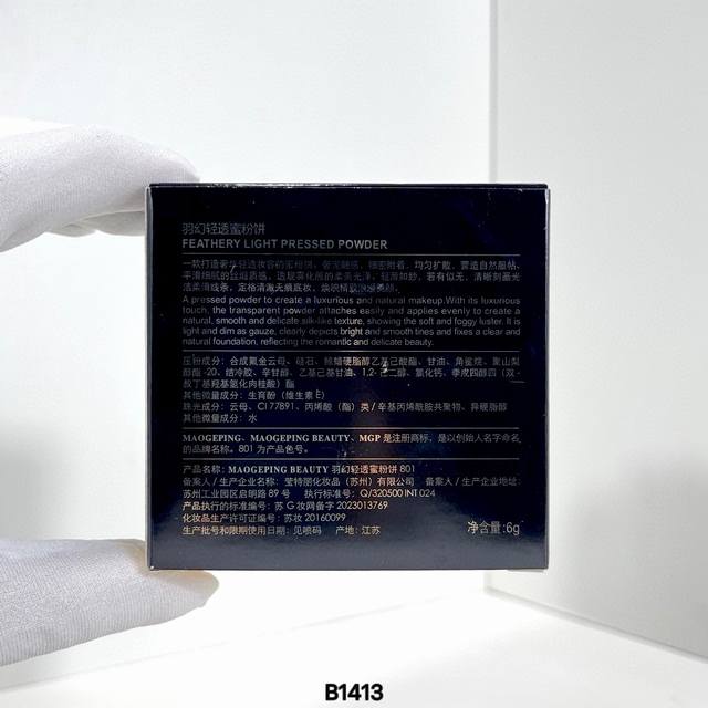 High-quality Mao Geping Little White Feather Powder 6G. Code: B1413! Shade: 801#. Phoenix feather embossing + delicate pearlescent finish. I'm once again captivated by the beauty of this little white feather powder. This colorless and transparent powder suits all skin tones and textures, slightly brightening the complexion and giving a subtle glow. After setting my makeup, my skin is completely radiant, like a mother's natural glow.
