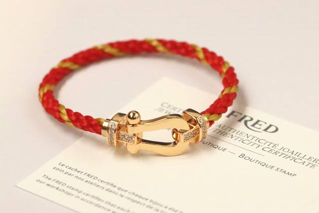 Fred Fred Large Diamond-Studded Horseshoe Gold Wire Rope Bracelet