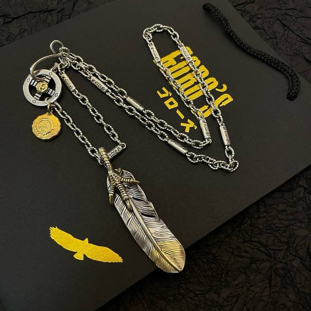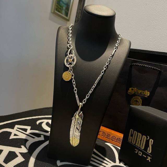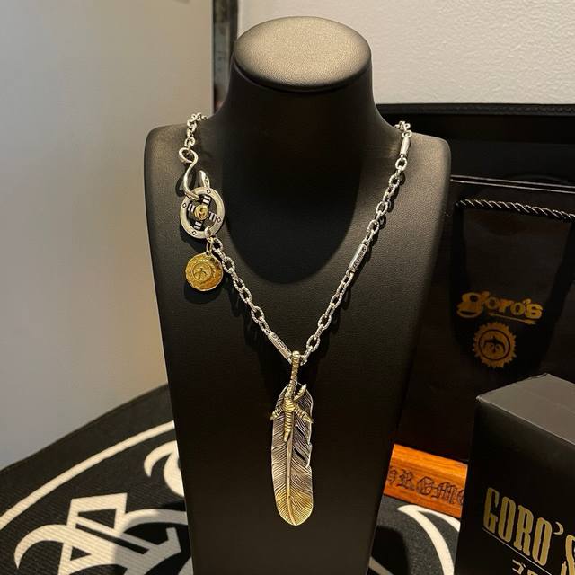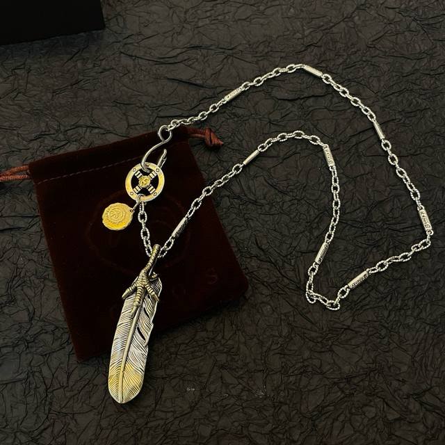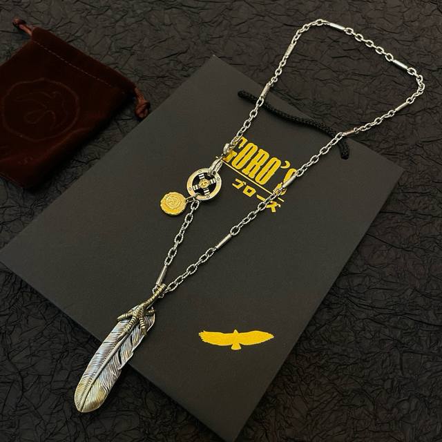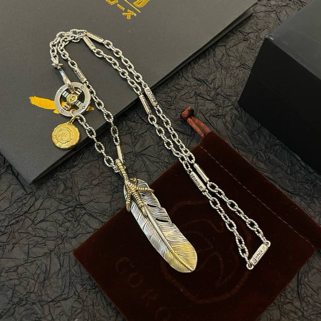 New Arrival: Goro'S Takahashi Goro Retro Gold Cake Feather Pendant, Takahashi Classic Necklace, Top-Tier Version. Exclusively photographed, targeting the high-end market, absolutely different from ordinary versions! Product details in the pictures are consistent with the original! Original craftsmanship, exquisite quality, purely handmade. Authentic mold, trendy and fashionable, a must-have for men and women, suitable for couples, rock punk, Thai silver style, retro trendy and versatile. Same style as the official website.