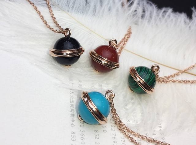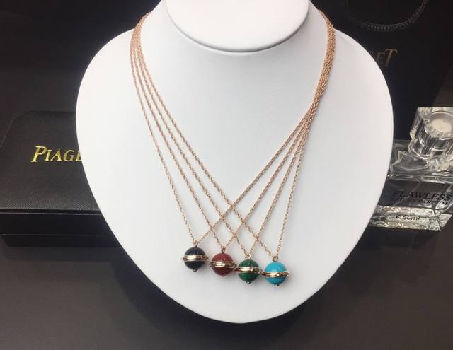 Piaget Possession Necklace ~ Rose gold necklace paired with black onyx, carnelian, malachite, and turquoise pendants, adorned with the Possession rotating ring. The precious and beautiful rotating ring is set with a single round brilliant-cut diamond, exuding a captivating charm. The craftsmanship is exquisite, using an 18K rose gold plating process. [Wink] A must-have for goddesses! P DDD