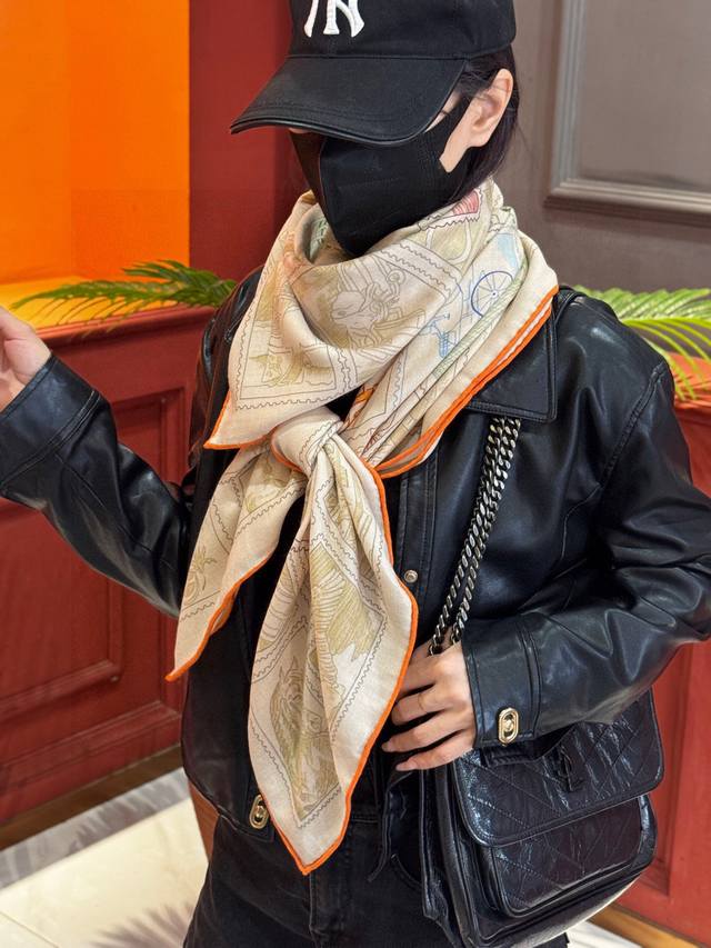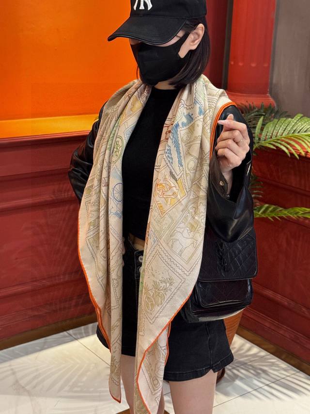 2025 Autumn/Winter Pre-Arrival Double-Sided Tonal Cashmere and Wool Wool Shawl, Hand-Rolled Edge, Cashmere and Silk Blend Shawl. 70% Cashmere, 30% Mulberry Silk. This shawl is made of a classic cashmere and silk blend fabric, soft, lightweight, and easy to wear. A must-have for air-conditioned rooms! Ideal for chilly days or cool nights. Size: 140 x 140 cm. Due to the hand-rolled edges, the size may vary slightly from the stated size.