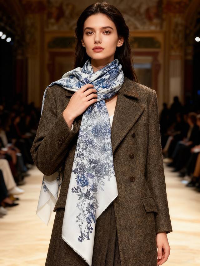 A glowing scarf from D brand, with a bright floral scent. VIPs highly recommend grabbing it now! High-end, absolutely gorgeous, pure cashmere, baby-soft feel, incredibly comfortable. A true feminine gem, extremely rare, suitable for all seasons. Truly beautiful and incredibly captivating. The effect when worn is simply stunning. The quality is perfect. This scarf exudes a high-end aura while being exquisitely beautiful. Definitely a must-have new style. The moment you hold it, you'll be glad you're a woman. A truly exquisite piece worth appreciating. Perfect for those with impeccable taste and style. A top choice for VIPs. Size: 100*200 DDD