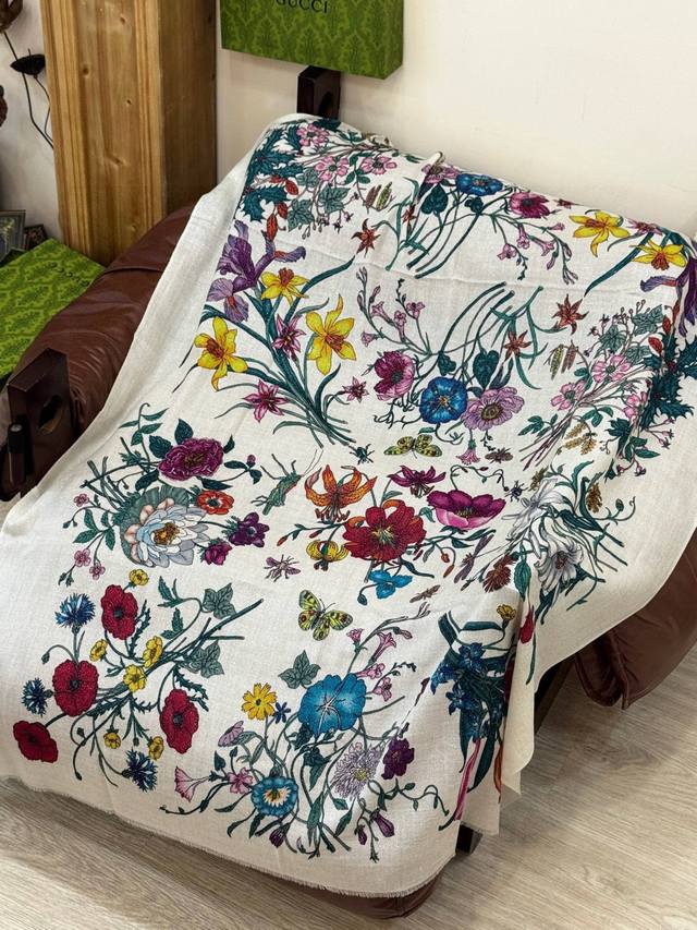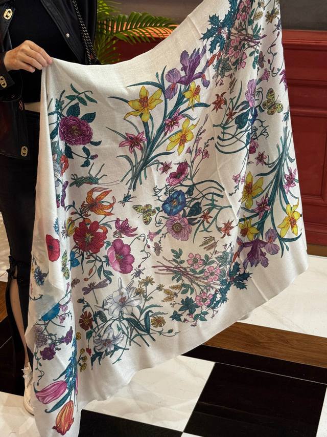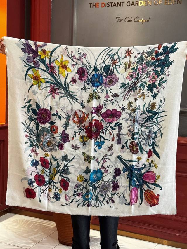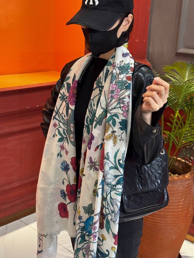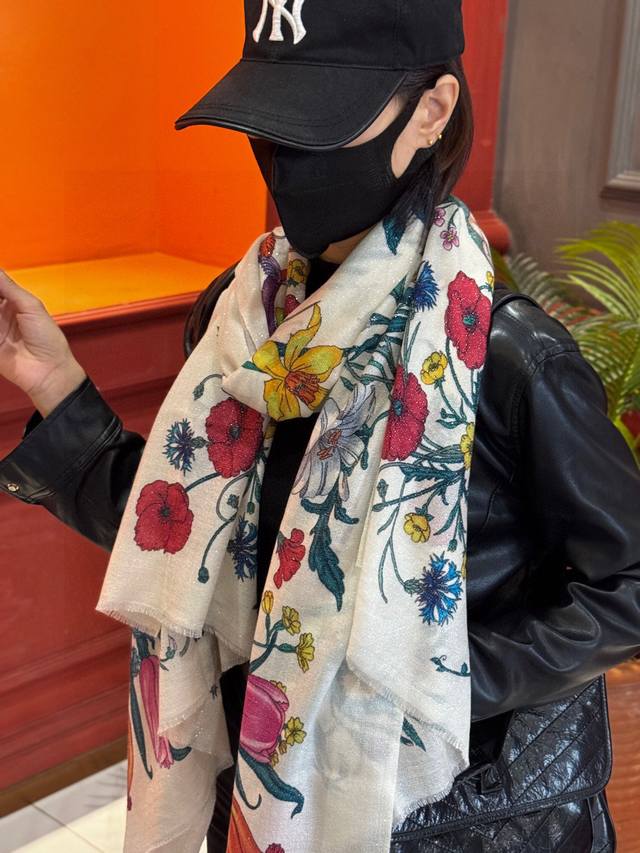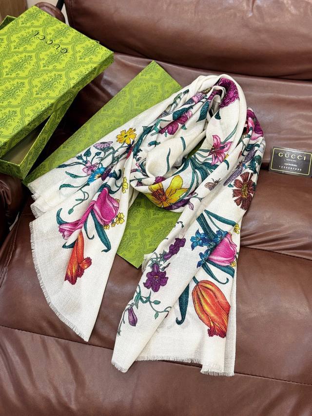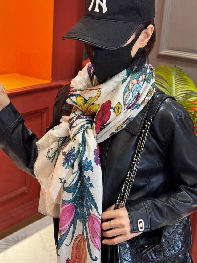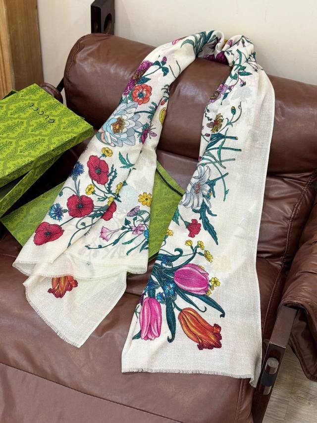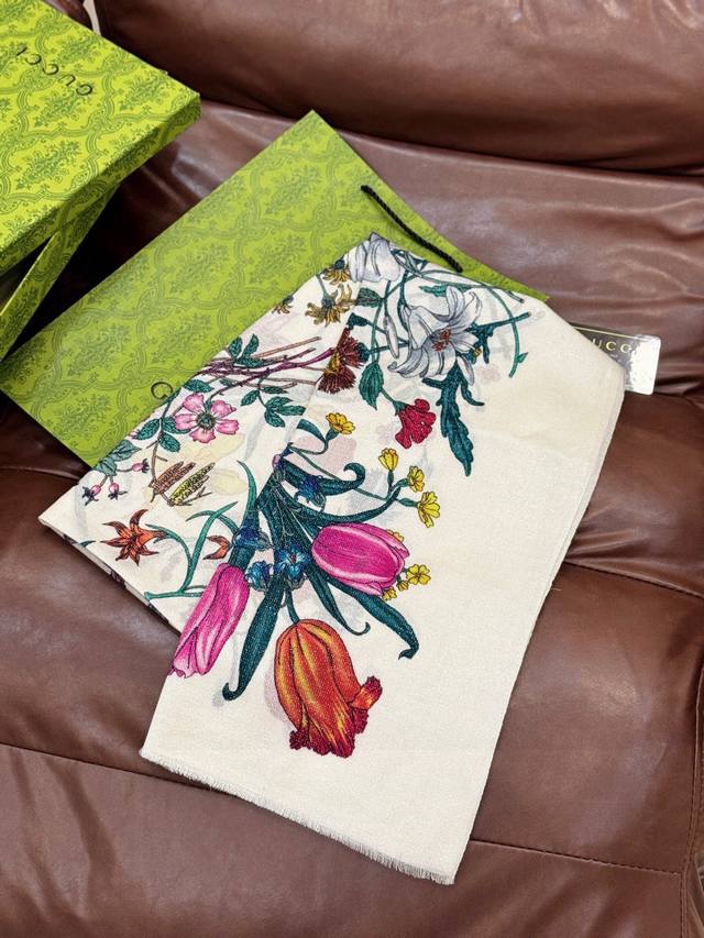 A shiny, new cashmere scarf! Grab it now! G brand new floral long scarf, a high-end must-have, extremely rare! It looks amazing on, truly beautiful and incredibly captivating. The quality is perfect; the scarf exudes a high-end aura while being exquisitely beautiful. Definitely a must-have! The moment you hold it, you'll be glad you're a woman. A truly exquisite piece worth appreciating. Perfect for those with impeccable taste and style. Size: 110*200cm. 100% premium cashmere.
