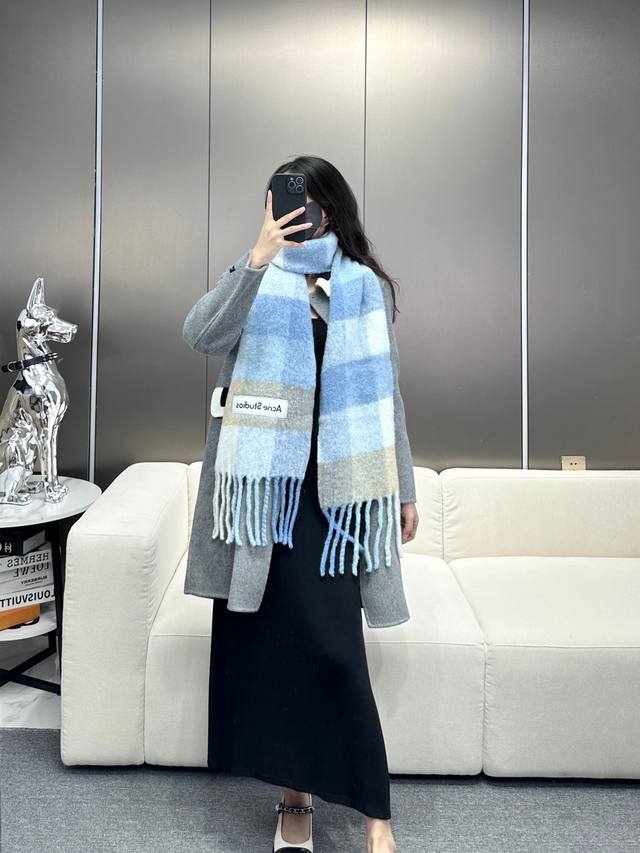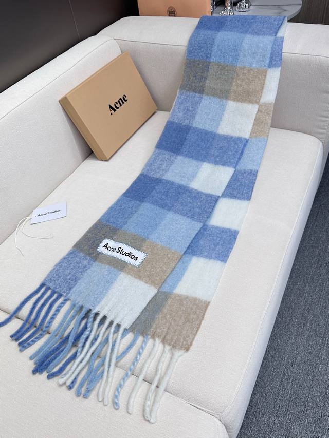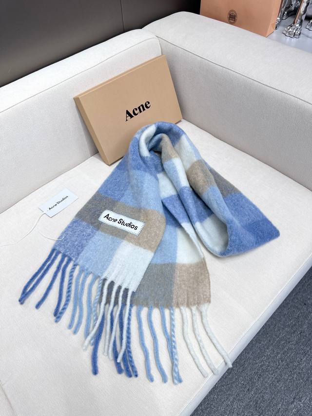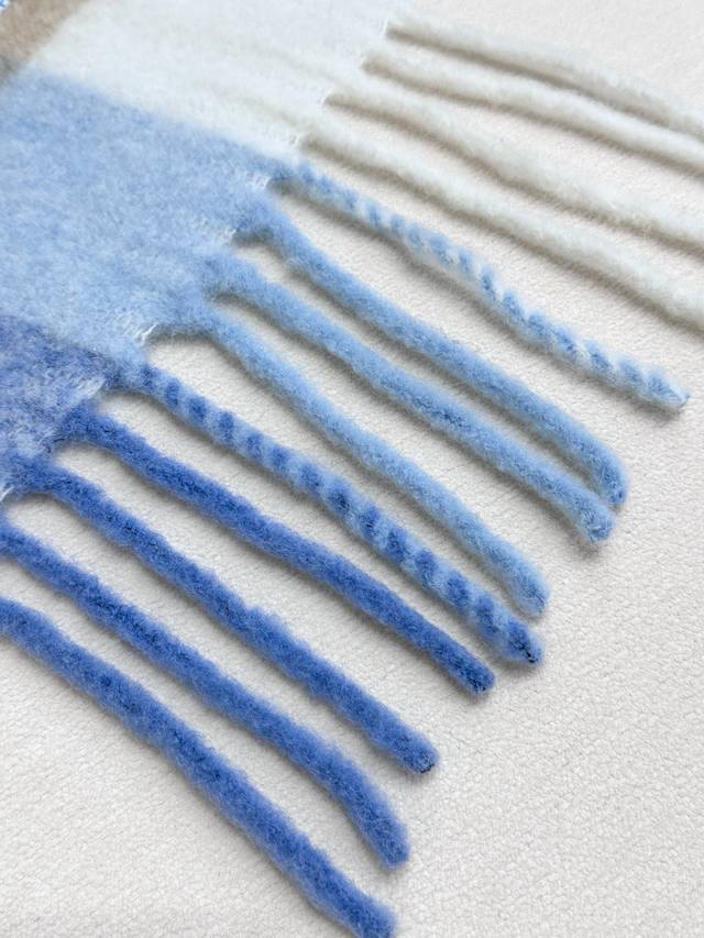 Annual Hot Item Arrives! Original Factory Order, Acne New Alpaca and Mohair Rainbow Scarf, Warm Colors of Stockholm! Love at First Sight, Super High-Value Design! Dreamy Color Scheme, Outshines All Other Versions on the Market, Genuine Original Goods. Acne scarves always surprise! The classic "Valley" oversized version originated in Italy, incorporating warm Nordic color blocking, super versatile, immersed in various color palettes. In winter, you can bury your head in this large scarf, super warm and cozy! High coverage, makes your face look smaller! Mohair with wool content, the fabric is crisp and comfortable, the thick tassels are as cute as shrimp chips! The hand-stitched oversized logo is exceptionally exquisite and surprising! Specifications: 28*250Cm, Composition: 33% Alpaca Wool, 25% Wool, 22% Nylon, 20% Mohair.