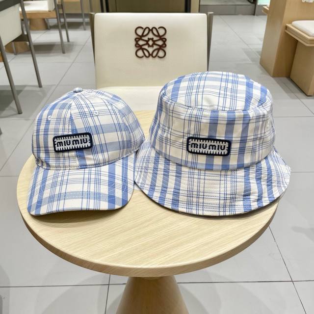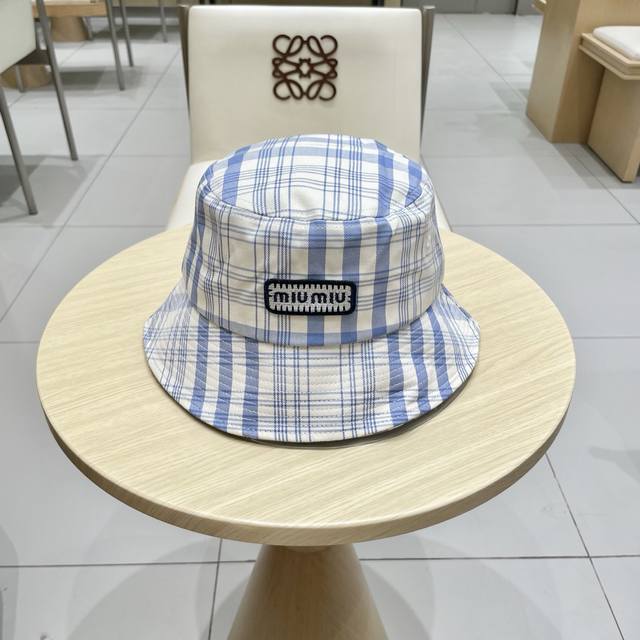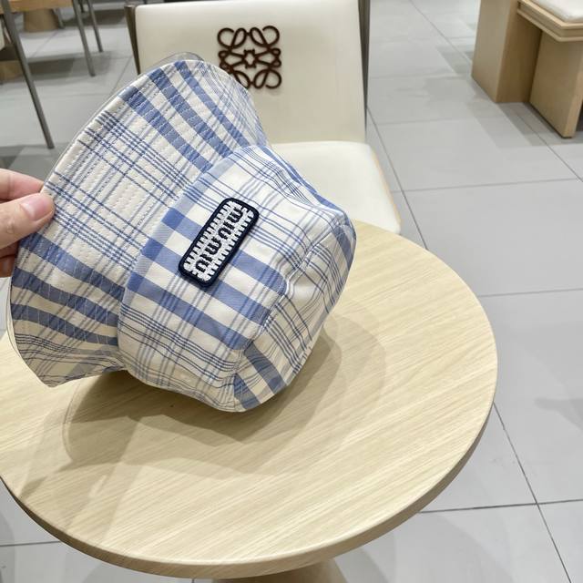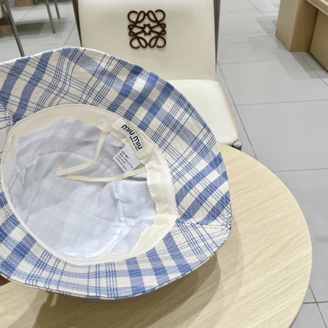 Baseball cap bucket hat Miu Miu Miumiu small fresh blue plaid checkered bucket