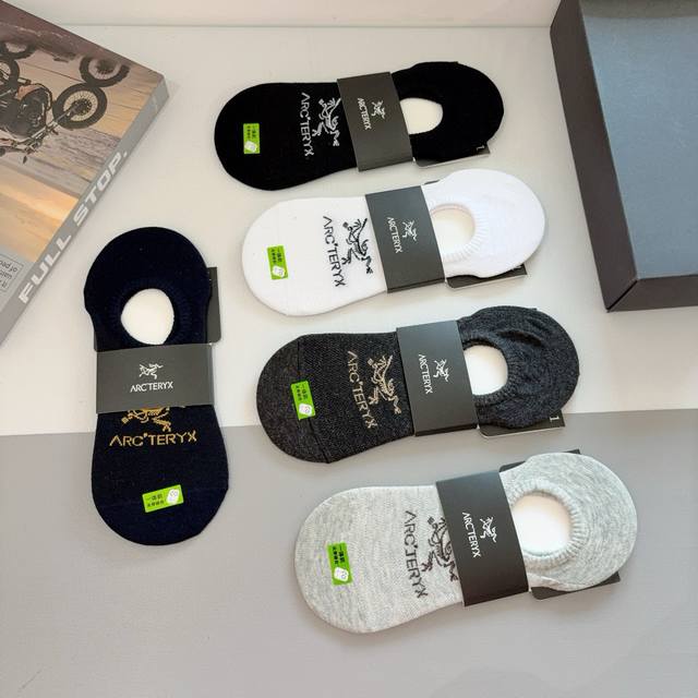 Arc Teryx 2025 Spring New Arrival Hot Boat Socks, pure cotton fabric, classic logo pattern, trendy socks, a must-have for fashionistas, super easy to match.