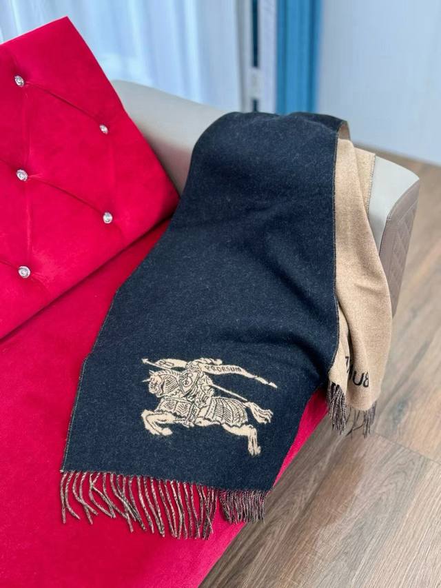 Bur Reversible Equestrian Equestrian Logo Cashmere Scarf. Adorned with jacquard Equestrian Ekd and Bur logos. Features a brushed finish for a soft touch. Super slimming, sophisticated, and stylish. Primarily due to its excellent design and high-quality feel, its moderate thickness makes it very flattering and versatile. Size: 45*210cm. % Cashmere.