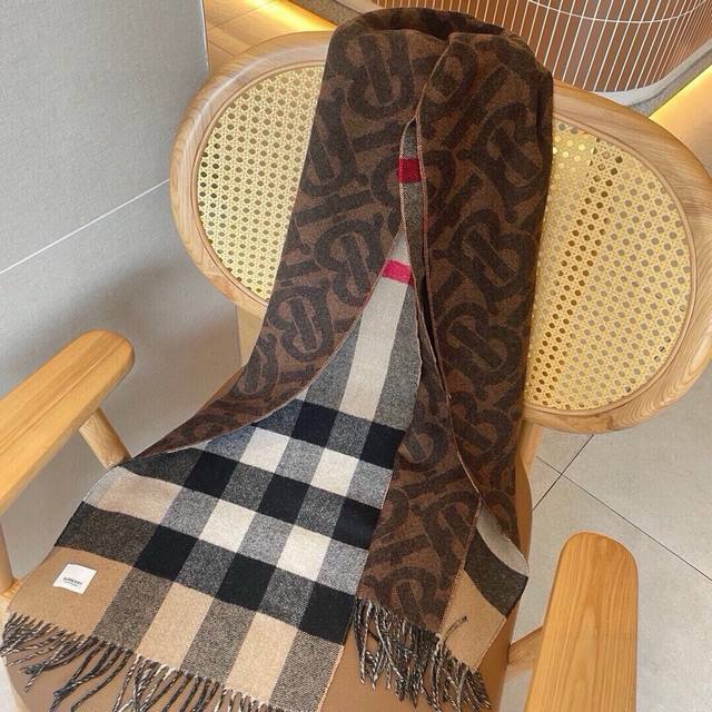 Bur This unisex couple's double-sided lettered scarf features Tb elements on one side and classic plaid on the other! It's a stylish design that can be worn as two! The 200*35cm size is just right, and cashmere fabric embodies the charm of elegant art! This scarf is unisex and can even be worn as a couple's scarf! The color combination is extremely high-end and classy! The material is soft and has a special three-dimensional feel, making it look amazing when worn! You can pair it with anything, and use one as two! It's very cost-effective and versatile! Every color combination is just right! A design that is both simple, elegant, and very charming! 200*36cm