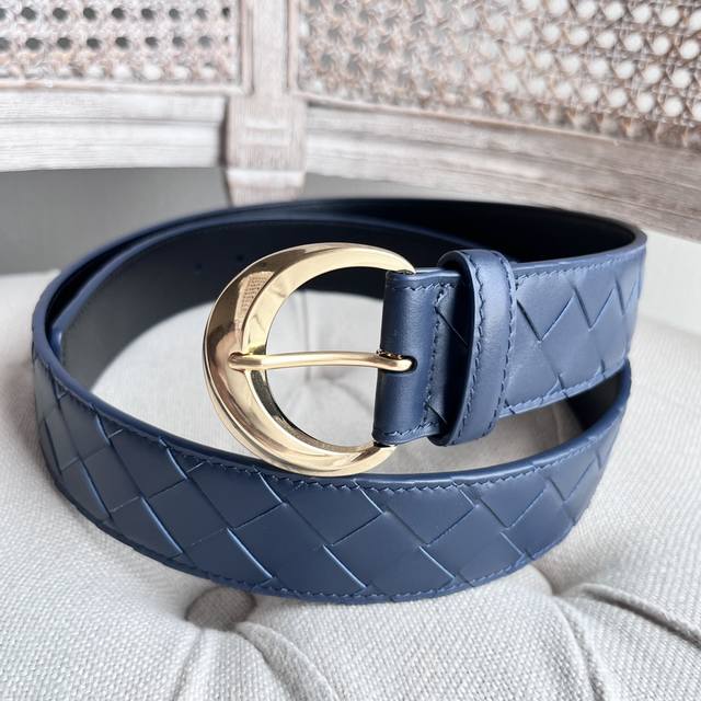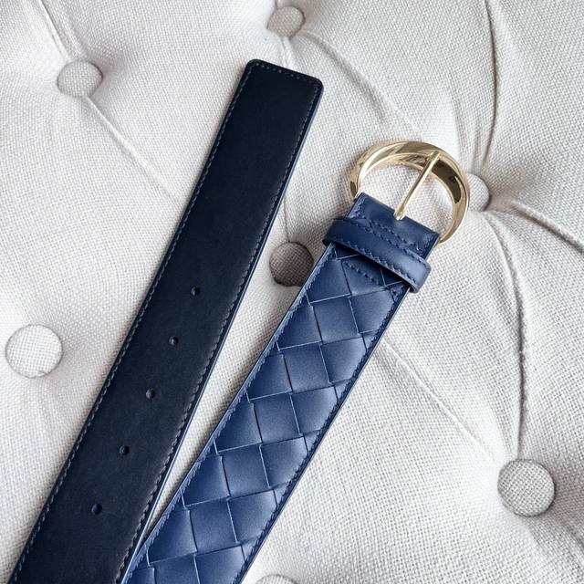 Bv The latest wide braided belt, unisex, handmade Intreccio large plaid woven double-sided Italian calfskin with a vintage gold pin buckle. Width 40mm