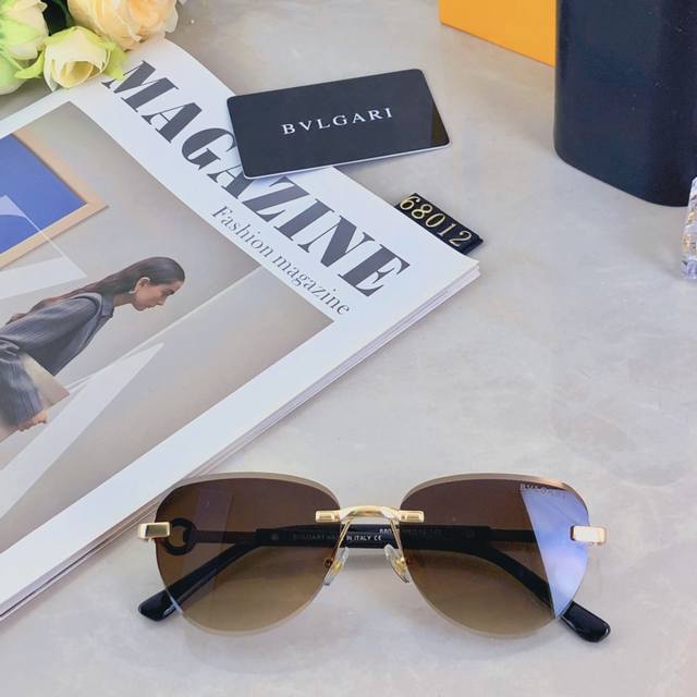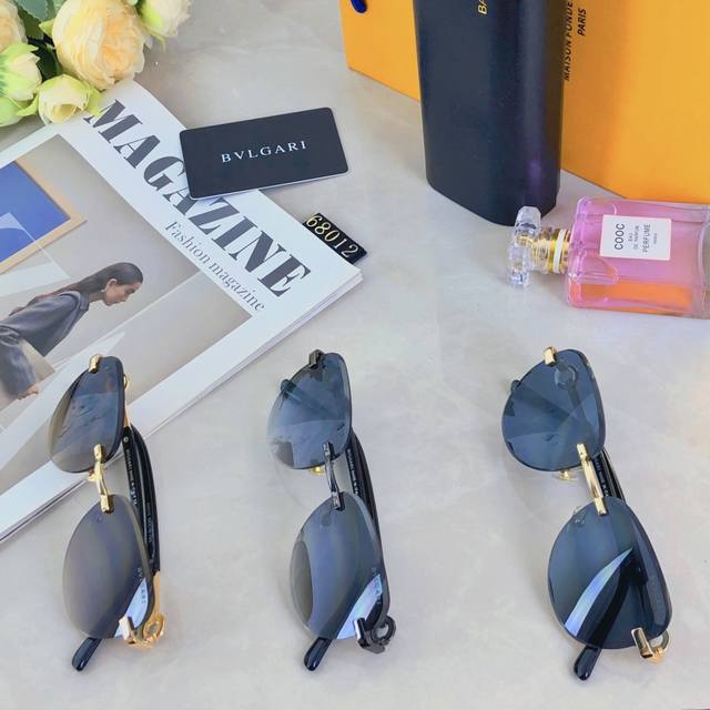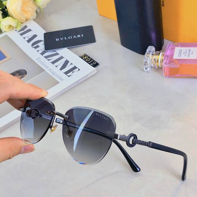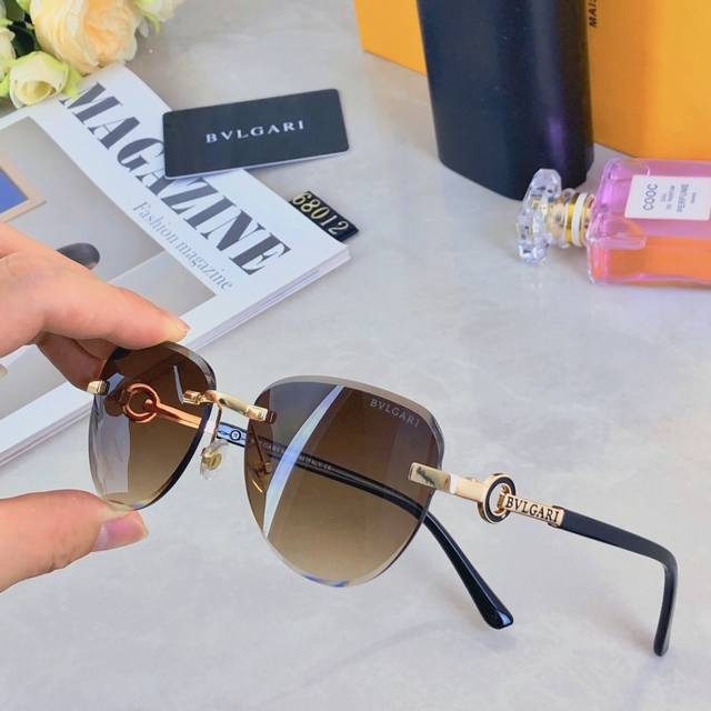 Bvlgar* frameless trimmed sunglasses filter beauty sunglasses large frame trendy