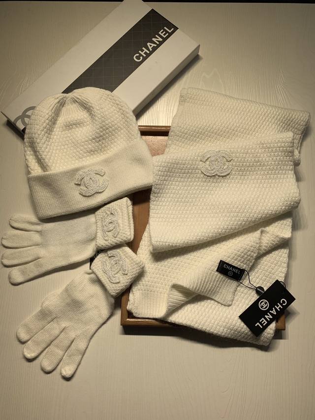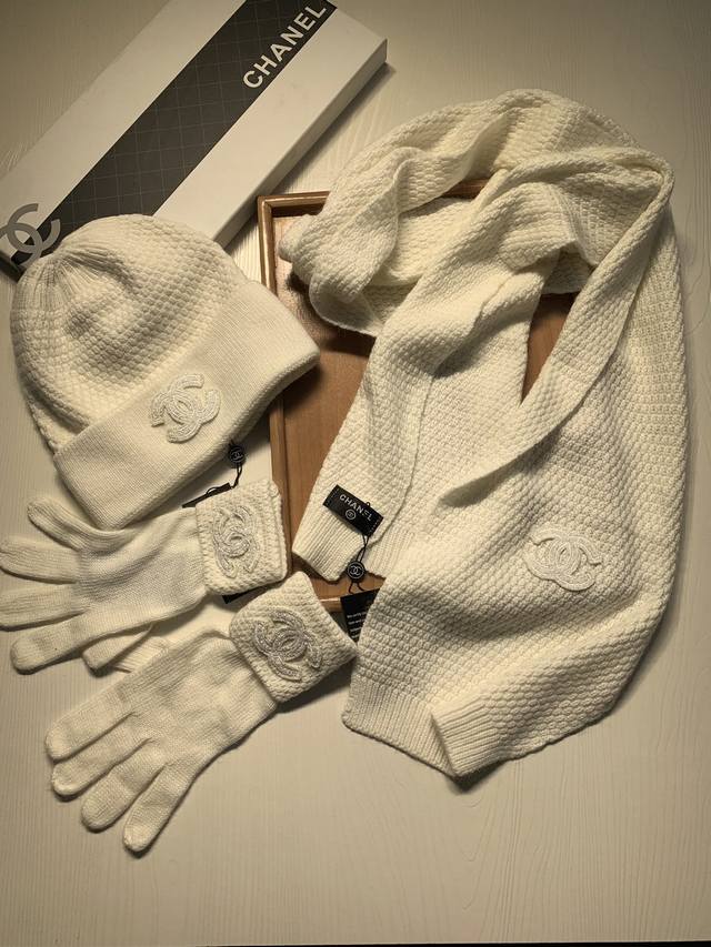C. A classic three-piece wool suit with hat, scarf, and gloves! Material: 70% wool, 30% rabbit fur. Super warm and comfortable! A perfect winter-defying accessory for young ladies! This winter, you need a hat and a set! Warm and stylish! Unisex style.