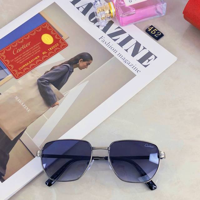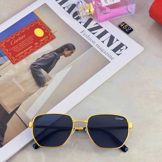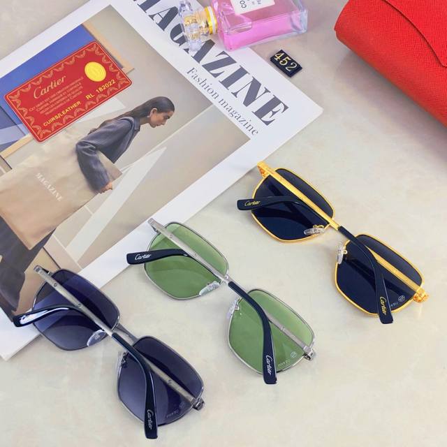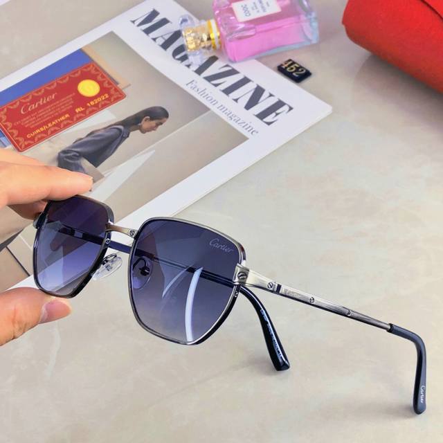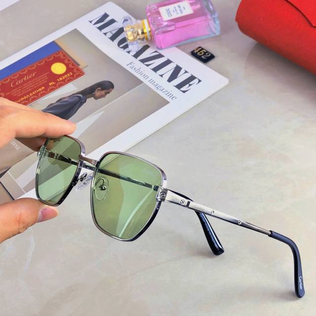Cartie* High-end metallic sunglasses, couple style, 2025 new style, makes round and square faces look smaller, metal frame square sunglasses DDD