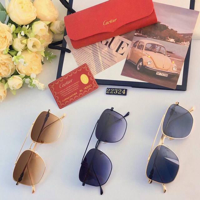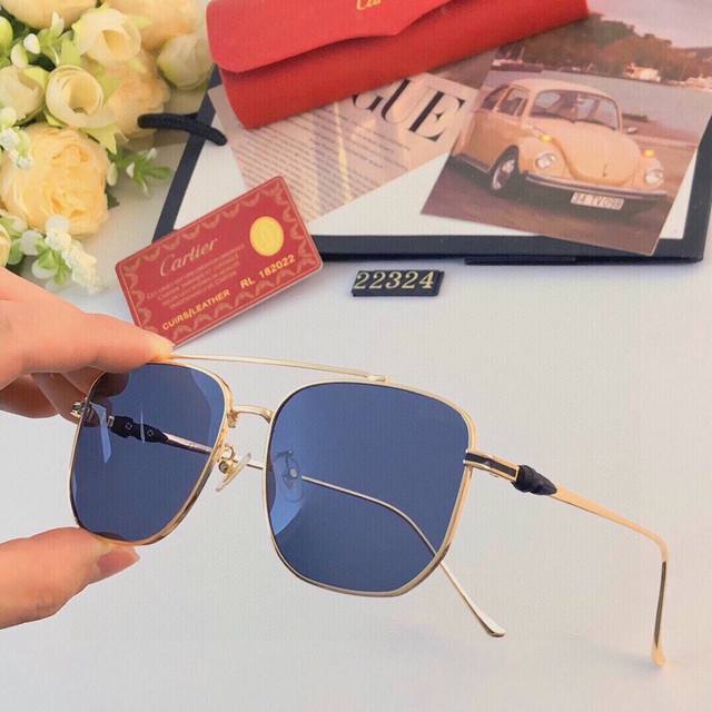 Cartie* New European and American Style Men's Sunglasses Square Metal Gradient Lens Gold Frame Double Bridge Sunglasses