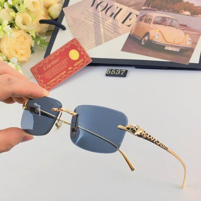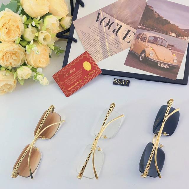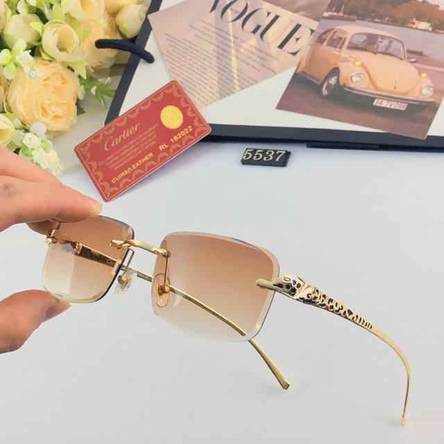 Cartie* New fashion frameless metal leopard sunglasses European and American retro personality street shooting anti-glare sunglasses for men and women