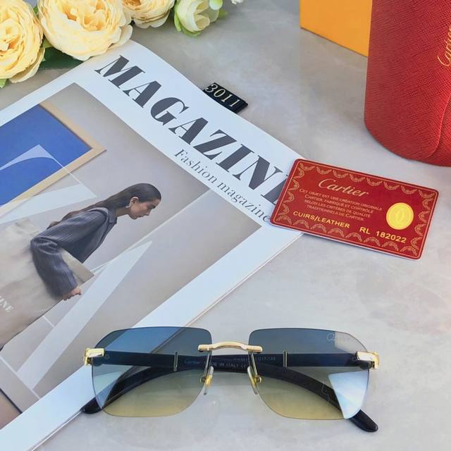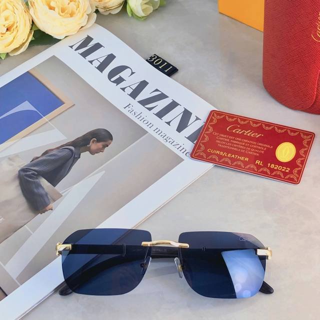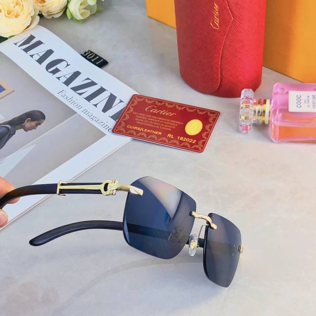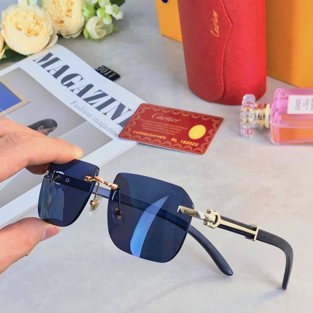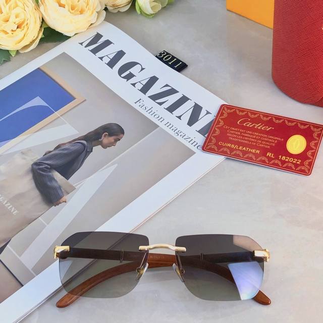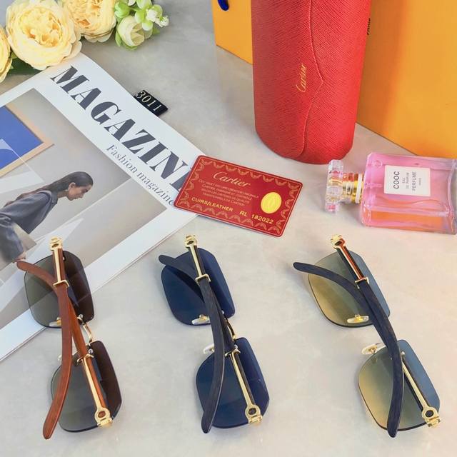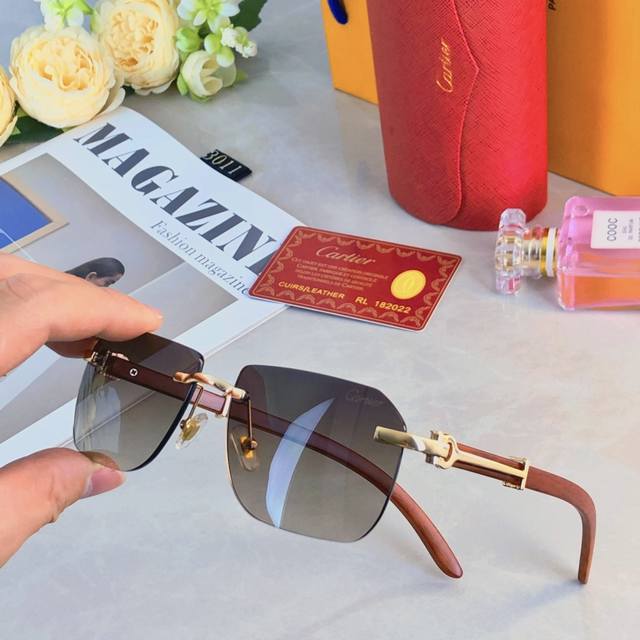 Cartie* Quan Zhilong's same style sunglasses frameless sunglasses Ins European and American narrow frame wooden legs high-end feeling full concave shape model