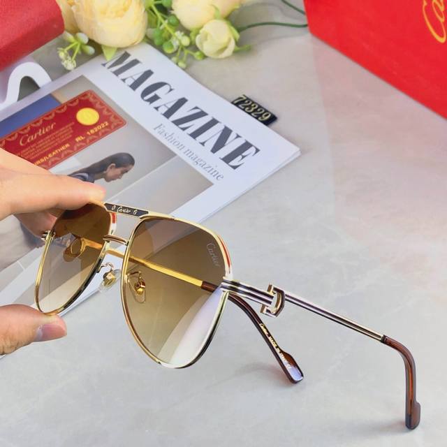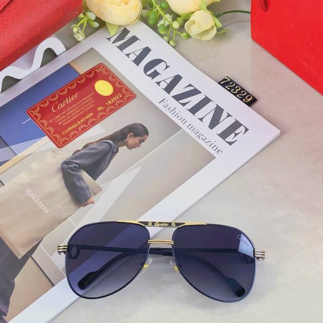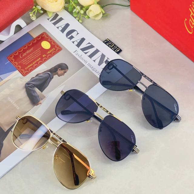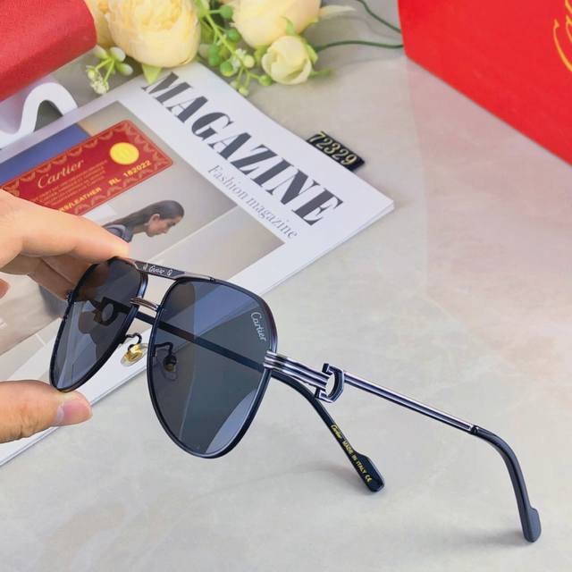 Cartie*European and American retro men's punk style sunglasses metal double beam high-end business style sunglasses men's UV400 sun protection
