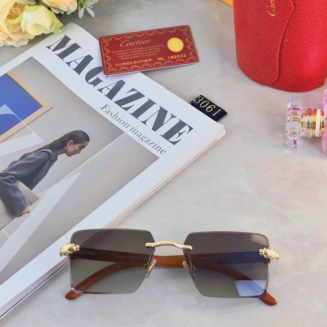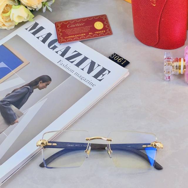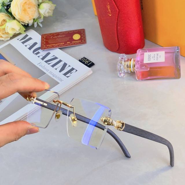 Cartie*European and American style personality leopard frameless trim glasses 2025 new temperament retro sense elegant frame