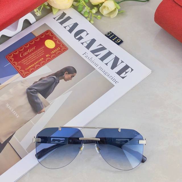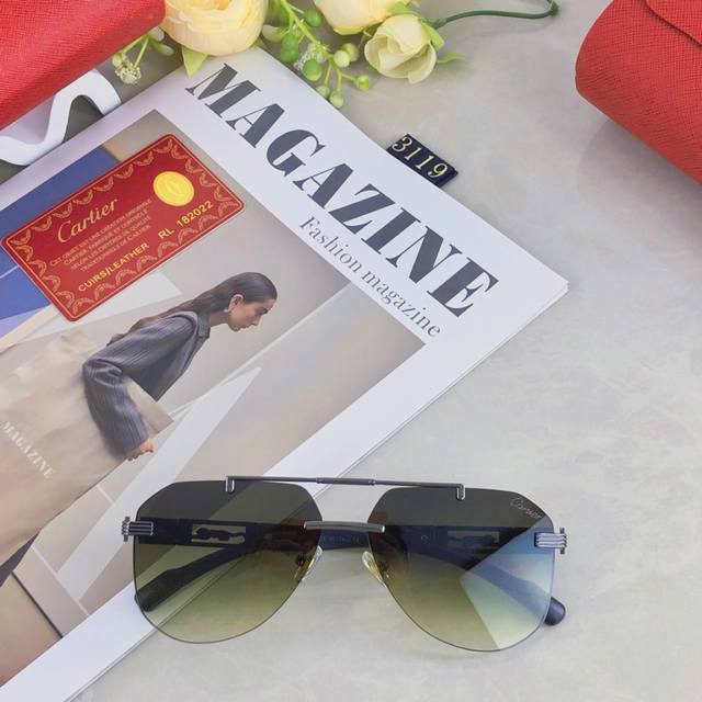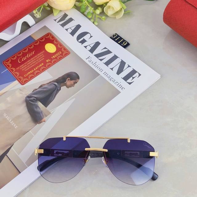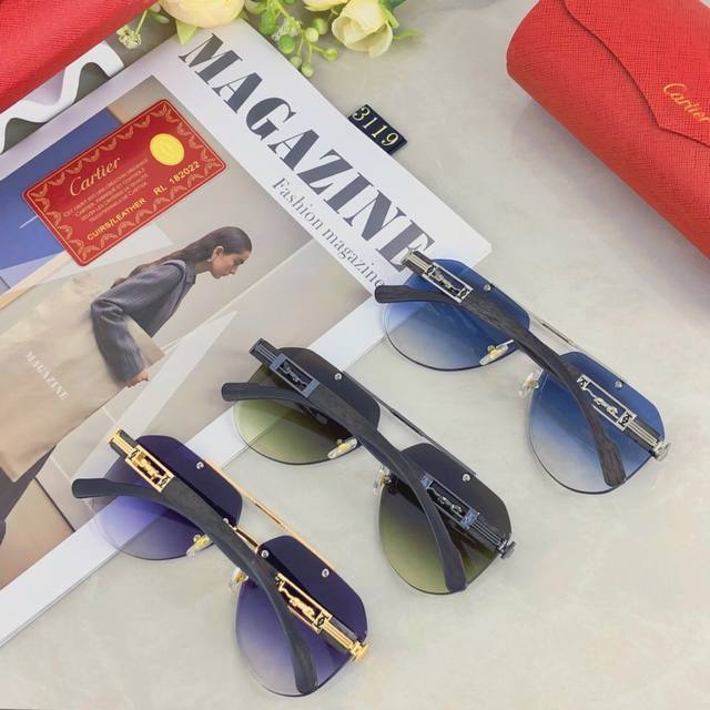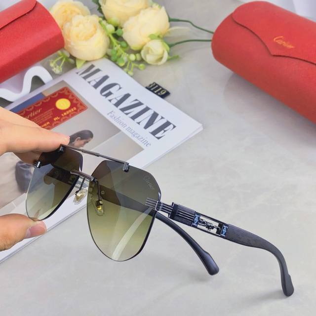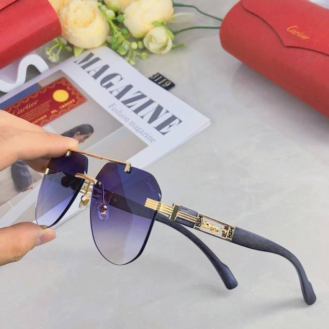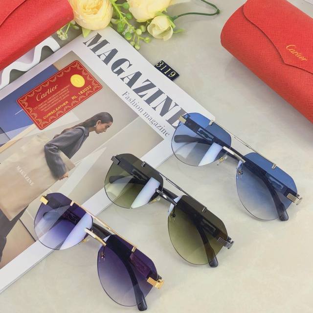 / Cartie*Fashionable luxury metal style half-frame toad sunglasses driving all-mat