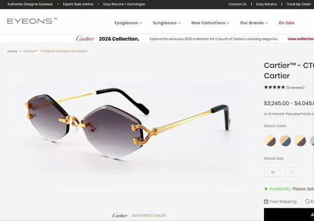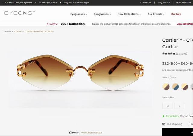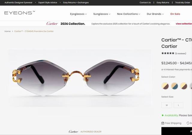 / Cartie*Model: Ct0769S Size: 142 Titanium Sunglasses, Photochromic Lenses Ddd