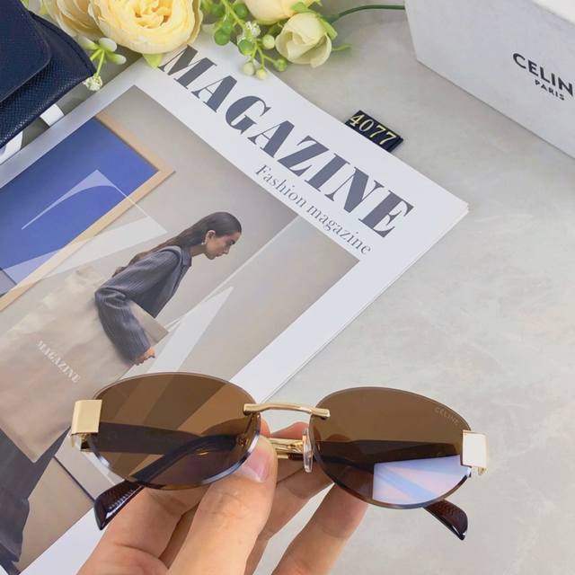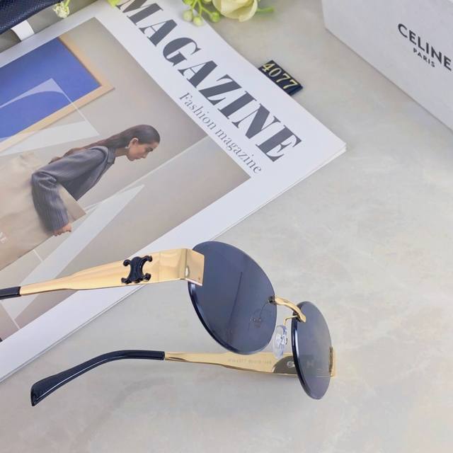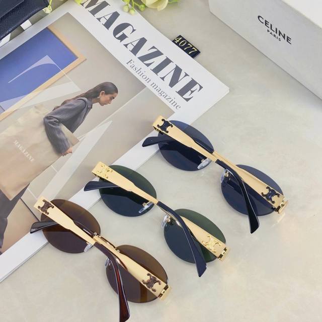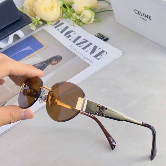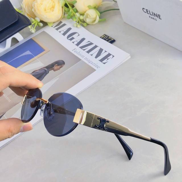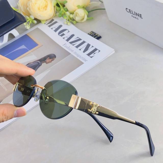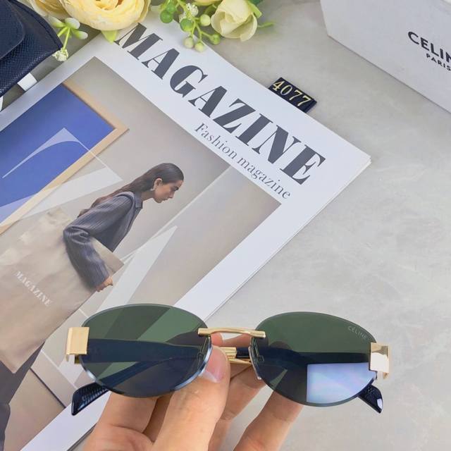 / Celin* Metal oval small frame sunglasses 2025 new retro high-end summer sunshade