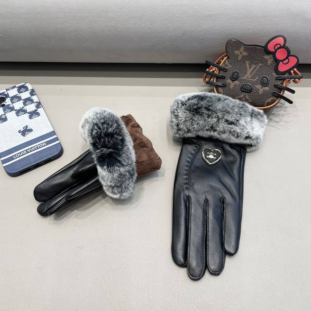 Celine women's new rabbit fur sheepskin gloves, fashionable gloves, warm in autumn and winter with fleece lining, classic and simple to use, super comfortable and soft, versatile! Size Ml