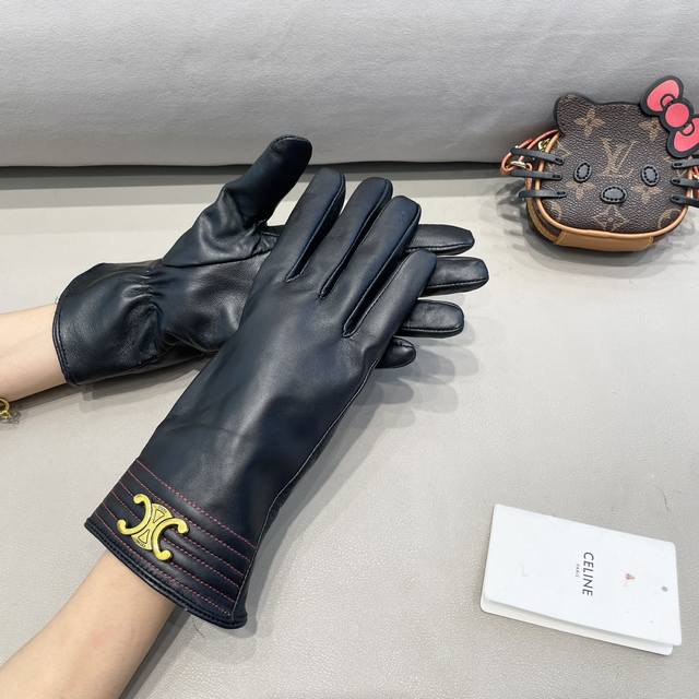 Celine Women's New Sheepskin Gloves, fashionable gloves, warm for autumn and winter with fleece lining, classic and simple design, super comfortable and soft to wear, versatile! Ml
